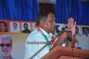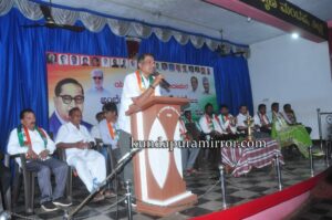 ಕುಂದಾಪುರ: ಸಾಮಾಜಿಕ ನ್ಯಾಯ, ಸಮಾನತೆ , ಸ್ವಾತಂತ್ರ್ಯ ಮತ್ತು ಹಕ್ಕುಗಳನ್ಬು ನೀಡಿರುವ ಅಂಬೇಡ್ಕರ್ ರಚಿಸಿಕೊಟ್ಟ ಸಂವಿಧಾನದಿಂದಲೇ ನಾವಿಂದು ನೆಮ್ಮದಿಯಿಂದ ಬದುಕುತ್ತಿದ್ದೇವೆ. ಅಂತಹಾ ಸಂವಿಧಾನವನ್ನೇ ಬದಲಾಯಿಸುವ ಹುನ್ನಾರವಿದ್ದು, ಮನುವಾದಿಗಳಿಗಳಿಂದ ಸಂವಿಧಾನಕ್ಕೆ ಧಕ್ಕೆಯಾಗುವ ಸಾದ್ಯತೆಗಳಿವೆ. ಆ ನಿನಿಟ್ಟಿನಲ್ಲಿ ಮುಂದಿನ ಚುನಾವಣೆಯಲ್ಲಿ ಮತದಾರರು ಬಿಜೆಪಿಗೆ ತಕ್ಕ ಪಾಠಕಲಿಸಬೇಕಿದೆ ಎಂದು ಎಂದು ಕೆಪಿಸಿಸಿ ಕಾರ್ಯಾಧ್ಯಕ್ಷ, ವಿಧಾನಪರಿಷತ್ ಸದಸ್ಯ ಮಂಜುನಾಥ ಭಂಡಾರಿ ಹೇಳಿದರು.