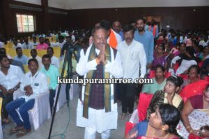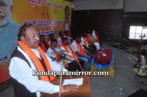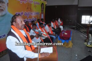 ಅವರು ಉಪ್ಪುಂದದ ಪರಿಚಯ ಸಭಾ ಭವನದಲ್ಲಿ ರಾಷ್ಟ್ರ ಭಕ್ತಬಳಗದ ನೇತೃತ್ವದಲ್ಲಿ ನಡೆದ ಕಾರ್ಯಕರ್ತರ ಸಭೆಯನ್ನು ಉದ್ದೇಶಿಸಿ ಮಾತನಾಡಿದರು.