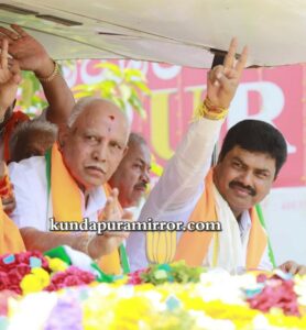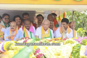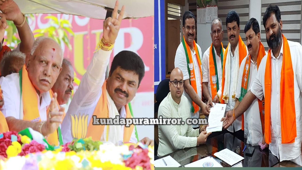 ಬೈಂದೂರು: ಶಿವಮೊಗ್ಗ ಲೋಕಸಭಾ ಕ್ಷೇತ್ರದ ಬಿಜೆಪಿಯ ಅಭ್ಯರ್ಥಿ ಬಿ.ವೈ. ರಾಘವೇಂದ್ರ ಅವರು ಬುಧವಾರ ಸಹಸ್ರಾರು ಕಾರ್ಯಕರ್ತರು, ಗಣ್ಯರ ಸಮ್ಮುಖದಲ್ಲಿ ನಾಮಪತ್ರ ಸಲ್ಲಿಸಿದರು. ಇದೇ ವೇಳೆ ಬೈಂದೂರು ವಿಧಾನಸಭಾ ಕ್ಷೇತ್ರದ ಪ್ರತಿ ಬೂತ್ಗಳಲ್ಲೂ ಕಾರ್ಯಕರ್ತರು ದೇವಸ್ಥಾನದಲ್ಲಿ ವಿಶೇಷ ಪೂಜೆ ಸಲ್ಲಿಸಿ, ಬೈಂದೂರಿನಿಂದಲೇ ಒಂದು ಲಕ್ಷಕ್ಕೂ ಅಧಿಕ ಲೀಡ್ ನೀಡುವ ಸಂಕಲ್ಪ ಮಾಡಿದರು.