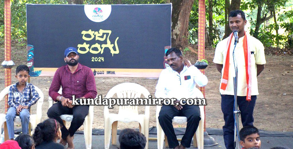 ಯಶಸ್ವೀ ಕಲಾವೃಂದ ಕೊಮೆ-ತೆಕ್ಕಟ್ಟೆ, ಧಮನಿ ಹಾಗೂ ದಿಮ್ಸಾಲ್ ಸಂಸ್ಥೆಗಳ ಸಹಯೋಗದಲ್ಲಿ 24ನೇ ದಿನದ ‘ರಜಾರಂಗು-24’ ಶಿಬಿರವು ಮೇ 4 ರಂದು ತೆಕ್ಕಟ್ಟೆಯಲ್ಲಿ ನಡೆದ ಸಮಾರಂಭವನ್ನುದ್ದೇಶಿಸಿ ರವೀಂದ್ರ ಮಾತನ್ನಾಡಿದರು.