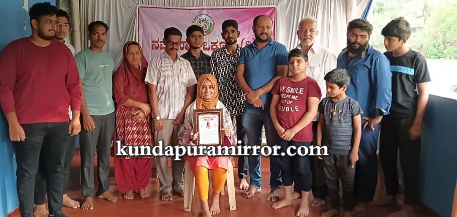 ಕುಂದಾಪುರ :ನಮ್ಮ ನಾಡ ಒಕ್ಕೂಟ (ರಿ)ಹೆಬ್ರಿ ಘಟಕದ ವತಿಯಿಂದ 2023-24ನೇ ಯ ಸಾಲಿನ ಎಸ್ಎಸ್ಎಲ್ಸಿ ಪರೀಕ್ಷೆಯಲ್ಲಿ ಉಡುಪಿ ಜಿಲ್ಲೆಯ ಹೆಬ್ರಿ ತಾಲೂಕಿಗೆ ಪ್ರಥಮ ಸ್ಥಾನ ಪಡೆದ ಹೆಬ್ರಿ ಸರ್ಕಾರಿ ಪದವಿ ಪೂರ್ವ ಕಾಲೇಜು ಪ್ರೌಢ ಶಾಲಾ ಆಂಗ್ಲ ಮಾಧ್ಯಮ ವಿಭಾಗದ ವಿದ್ಯಾರ್ಥಿನಿ ಹಾಗೂ ಹೆಬ್ರಿ ಮಠದ ಬೆಟ್ಟು ನಿವಾಸಿ ಅನ್ವರ್ ರಪೀ ಹಾಗೂ ಆಯಿಶಾ ಬಾನುರವರ ಪುತ್ರಿ ಶಿಫಾವ್ರವರಿಗೆ ಅಭಿನಂದನೆ ಕಾರ್ಯಕ್ರಮ ಹೆಬ್ರಿ ಅನ್ವರ್ ರಫಿಯವರ ಮನೆಯಲ್ಲಿ ಇತ್ತೀಚೆಗೆ ನಮ್ಮ ನಾಡ ಒಕ್ಕೂಟ ಹೆಬ್ರಿ ಘಟಕದ ಪ್ರದಾನ ಕಾರ್ಯದರ್ಶಿ ಅಬ್ದುಲ್ ಶುಕುರ್ ಬೆಳ್ವೆ ಯವರ ನೇತೃತ್ವದಲ್ಲಿ ನಡೆಯಿತು. 625 ರಲ್ಲಿ 612ಅಂಕ ( ಶೇ.97.92% ) ಪಡೆದು ವಿಶೇಷ ಸಾಧನೆ ಮಾಡಿ, ಹೆಬ್ರಿ ತಾಲೂಕಿಗೆ ಪ್ರಥಮ ಸ್ಥಾನ ಪಡೆದಿದ್ದಾರೆ. ಹಿಂದಿ ಮತ್ತು ಸಮಾಜ ವಿಜ್ಞಾನದಲ್ಲಿ ೧೦೦ ಅಂಕ ಪಡೆದಿದ್ದಾರೆ.
