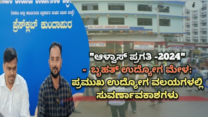 ಆಳ್ವಾಸ್ ಶಿಕ್ಷಣ ಪತಿಷ್ಠಾನದವತಿಯಿಂದ ಆಯೋಜಿಸಲ್ಪಡುತ್ತಿರುವ ಬೃಹತ್ ಉದ್ಯೋಗ ಮೇಳ ಈ ಬಾರಿ 14ನೇ ಆವೃತ್ತಿಯದ್ದಾಗಿದೆ. ಬ್ಯಾಂಕಿಂಗ್ ಮತ್ತು ಹಣಕಾಸು, ಐಟಿ, ಐಟಿಎಸ್, ಮ್ಯಾನುಫ್ಯಾಕ್ಚರಿಂಗ್, ಹೆಲ್ತ್ಕೇರ್ ಮತ್ತು ಫಾರ್ಮಾ, ಮಾರಾಟ ಮತ್ತು ಚಿಲ್ಲರೆ ವ್ಯಾಪಾರ, ಆಟೋಮೊಬೈಲ್, ಹಾಸ್ಪಿಟಾಲಿಟಿ, ಟೆಲಿಕಾಂ, ಮಾಧ್ಯಮ, ಶಿಕ್ಷಣ ಮತ್ತು ಎನ್ಜಿಓಗಳನ್ನು ಪ್ರತಿನಿಧಿಸುವ ಉನ್ನತ ಕಂಪೆನಿಗಳು ಆಳ್ವಾಸ್ ಪ್ರಗತಿಯಲ್ಲಿ ನೇಮಕಾತಿ ನಡೆಸಲಿವೆ. ಈ ಕಂಪೆನಿಗಳು ಪದವಿ ಮತ್ತು ಸ್ನಾತಕೋತ್ತರ ಪದವೀಧರರು, ವೈದ್ಯಕೀಯ ಮತ್ತು ಪ್ಯಾರಾ ಮೆಡಿಕಲ್, ಇಂಜಿನಿಯರಿಂಗ್, ಕಲಾ, ವಾಣಿಜ್ಯ ಹಾಗೂ ಮ್ಯಾನೇಜ್ಮೆಂಟ್, ಬೇಸಿಕ್ ಸೈನ್ಸ್, ನರ್ಸಿಂಗ್, ಐಟಿಐ, ಡಿಪ್ಲೊಮಾ, ಪಿಯುಸಿ ಎಸ್ಎಸ್ಎಲ್ಸಿ ಹಾಗೂ ಇತರ ಅರ್ಹ ಪ್ರತಿಭಾವಂತ ವಿದ್ಯಾರ್ಥಿಗಳಿಗೆ ಉದ್ಯೋಗಾವಕಾಶ ಕಲ್ಪಿಸಲಿವೆ ಎಂದರು.