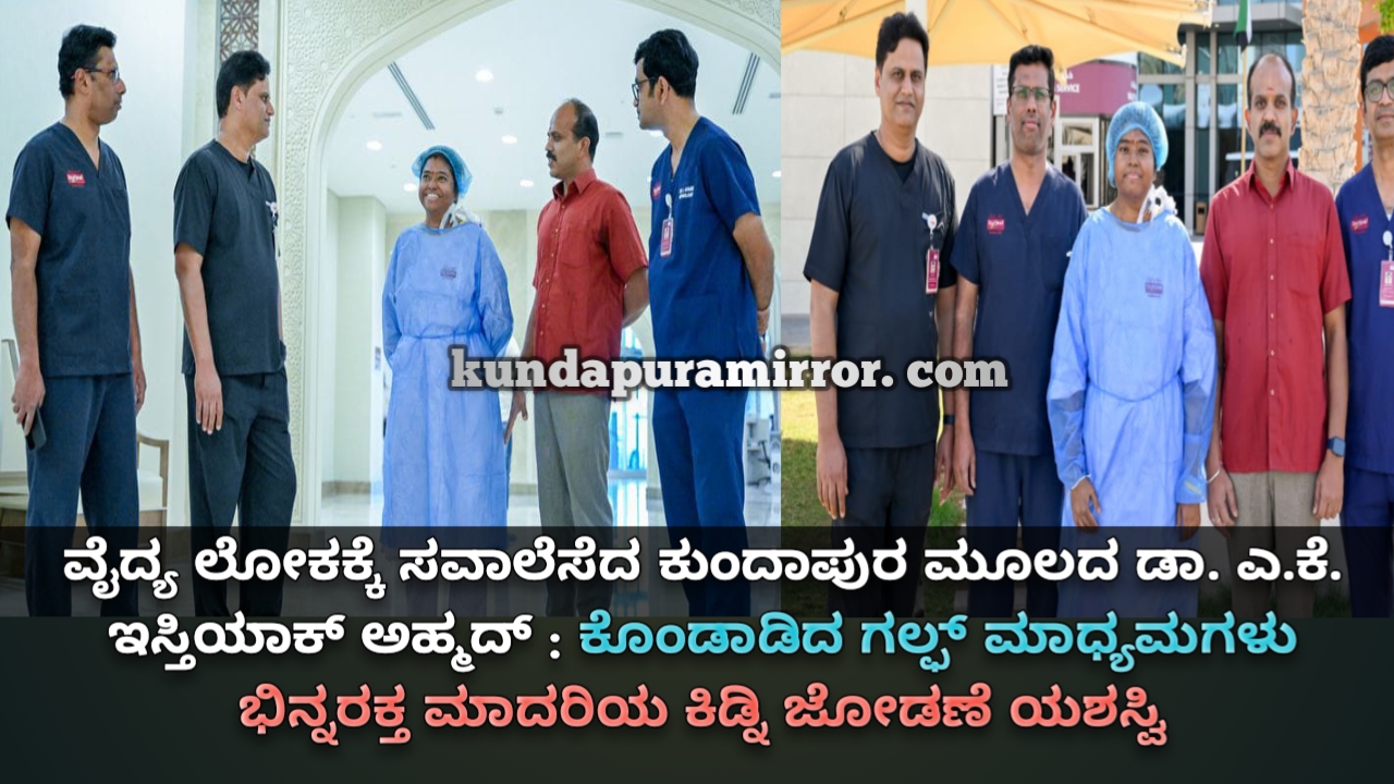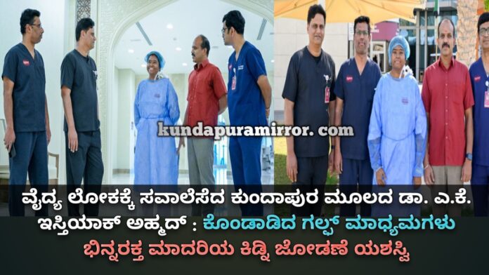 ಕುಂದಾಪುರ: ವೈದ್ಯ ಲೋಕಕ್ಕೆ ಸವಾಲಾಗಿರುವ ಎರಡು ಭಿನ್ನ ಮಾದರಿಯ ರಕ್ತ ವರ್ಗಕ್ಕೆ ಸೇರಿದ ಮೂತ್ರ ಪಿಂಡಗಳನ್ನು ಜೋಡಿಸುವಲ್ಲಿ ಕುಂದಾಪುರ ಮೂಲದ ಡಾ. ಇಸ್ತಿಯಾಕ್ ಮತ್ತು ಅವರ ತಂಡ ಯಶಸ್ವಿಯಾಗಿದೆ. ವೈದ್ಯ ಲೋಕದಲ್ಲಿ ತೀರಾ ಅಪರೂಪದ್ದಾಗಿರುವ ಎಬಿಒ ಹೊಂದಾಣಿಕೆಯಾಗದ ಅತ್ಯಂತ ಸಂಕೀರ್ಣವಾದ ಈ ಶಸ್ತ್ರ ಚಿಕಿತ್ಸೆಯನ್ನು ಅಬುದಾಭಿಯ ಖ್ಯಾತ ಆಸ್ಪತ್ರೆ ಬುರ್ಜೀಲ್ ಮೆಡಿಕಲ್ ಸಿಟಿ ಆಸ್ಪತ್ರೆಯಲ್ಲಿ ನಡೆಸಲು ವೈದ್ಯ ಡಾ.ಇಸ್ತಿಯಾಕ್ ಮತ್ತು ತಂಡ ತೀರ್ಮಾನಿಸಿದ್ದಲ್ಲದೇ ಯಶಸ್ವಿಯಾಗಿರುವುದನ್ನು ಗಲ್ಫ್ ಮಾಧ್ಯಮಗಳು ಹೆಡ್ ಲೈನ್ ನಲ್ಲಿ ಬಣ್ಣಿಸಿವೆ.