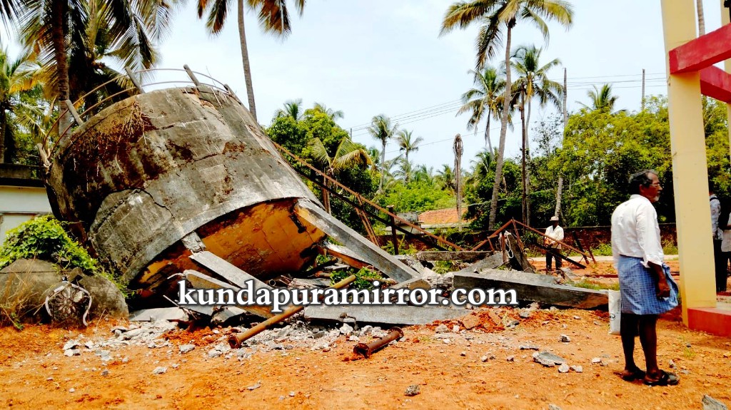 ಕೋಟ: ಕೋಟತಟ್ಟು ಗ್ರಾಮ ಪಂಚಾಯತಿ ವ್ಯಾಪ್ತಿಯ ಪಡುಕರೆ ಭಾಗದ ಶಿಥಿಲಾವಸ್ಥೆಯಲ್ಲಿರುವ ಸುಮಾರು 30 ರಿಂದ 35 ವರ್ಷ ಹಳೆಯ ನೀರಿನ ಟ್ಯಾಂಕ್ ಅನ್ನು ಯಾವುದೇ ರೀತಿಯ ಅನಾಹುತ ಸಂಭವಿಸಿದಂತೆ ಮುಂಜಾಗ್ರತ ಕ್ರಮವಹಿಸಿ ಯಶಸ್ವಿಯಾಗಿ ತೆರವುಗೊಳಿಸಲಾಗಿದೆ.