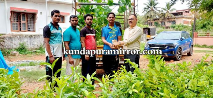 ಕೋಟ: ಇಲ್ಲಿನ ಕೋಟದ ಪಂಚವರ್ಣ ಯುವಕ ಮಂಡಲ ಅಧೀನ ಸಂಸ್ಥೆ ಪಂಚವರ್ಣ ಮಹಿಳಾ ಮಂಡಲ ನೇತೃತ್ವದಲ್ಲಿ ಗೀತಾನಂದ ಫೌಂಡೇಶನ್ ಮಣೂರು, ಮಣೂರು ಫ್ರೆಂಡ್ಸ್, ಹಂದಟ್ಟು ಮಹಿಳಾ ಬಳಗ ಕೋಟ, ವಿಪ್ರ ಮಹಿಳಾ ಬಳಗ ಸಾಲಿಗ್ರಾಮ,ಸಮುದ್ಯತಾ ಗ್ರೂಪ್ಸ್ ಕೋಟ ಇವರುಗಳ ಸಹಯೋಗದೊಂದಿಗೆ ಪ್ರತಿವರ್ಷ ಜೂನ್ನಿಂದ ಅಗಸ್ಟ್ ವರೆಗೆ ನಡೆಯುವ ಪರಿಸರ ಸ್ನೇಹಿ ಹಸಿರು ಅಭಿಯಾನಕ್ಕೆ ಸುವರ್ಣ ಎಂಟರ್ಪ್ರೈಸಸ್ ಬ್ರಹ್ಮಾವರ, ಗೀತಾನಂದ ಫೌಂಡೇಶನ್ ಮಣೂರು ಉಚಿತ ಗಿಡ ವಿತರಿಸುತ್ತಿದ್ದು ಇದರ ಭಾಗವಾಗಿ ಬ್ರಹ್ಮಾವರ ಸುವರ್ಣ ಎಂಟರ್ಪ್ರೈಸ್ ಮಾಲಿಕ ಮಧುಸೂದನ್ ಹೇರೂರು ಒಂದು ಸಾವಿರ ಅಧಿಕ ಪಂಚವರ್ಣ ಸಂಸ್ಥೆಗೆ ನೀಡಲಿದ್ದು ಸಾಂಕೇತಿಕವಾಗಿ 150ಗಿಡಗಳನ್ನು ಮಂಗಳವಾರ ಪಂಚವರ್ಣದ ಕಾರ್ಯಾಧ್ಯಕ್ಷ ರವೀಂದ್ರ ಕೋಟರವರಿಗೆ ಹಸ್ತಾಂತರಿಸಿದರು.
