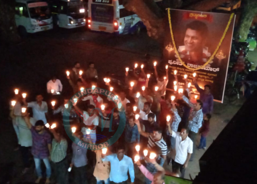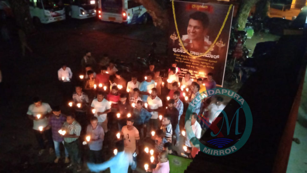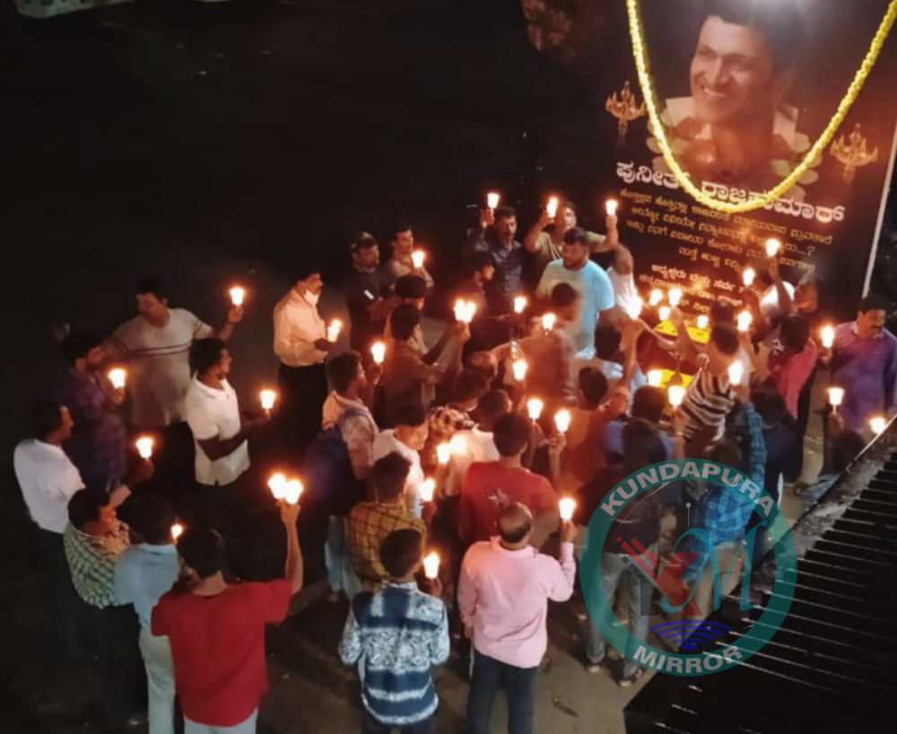 ಕುಂದಾಪುರ: ಹಠಾತ್ ಅಗುಲುವಿಕೆ ಇಂದ ಇಡೀ ರಾಜ್ಯದ ಅಭಿಮಾನಿಗಳನ್ನು ದುಃಖ ಸಾಗರದಲ್ಲಿ ತಳ್ಳಿದ ಪವರ್ ಸ್ಟಾರ್ ಪುನೀತ್ ರಾಜ್ ಕುಮಾರ್ ಅವರಿಗೆ ಕನ್ನಡಬಿಮಾನ ಡಾ. ರಾಜ್ ಸಂಘಟನೆ ವತಿಯಿಂದ ದೀಪಗಳನ್ನು ಬೆಳಗಿಸಿ ಭಾವ ಪೂರ್ಣ ಶ್ರದ್ಧಾಂಜಲಿ ಅರ್ಪಿಸಲಾಯಿತು.