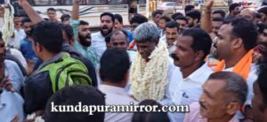 ಸಾಸ್ತಾನದ ಮಾಬುಕಳದಲ್ಲಿ ಬಿಜೆಪಿ ಕಾರ್ಯಕರ್ತರು ಹಾಗೂ ಅವರ ಅಭಿಮಾನಿಗಳು ಹಾರ ತೊಡಿಸಿ ಪಟಾಕಿ ಸಿಡಿಸಿ ಬರಮಾಡಿಕೊಂಡರು.