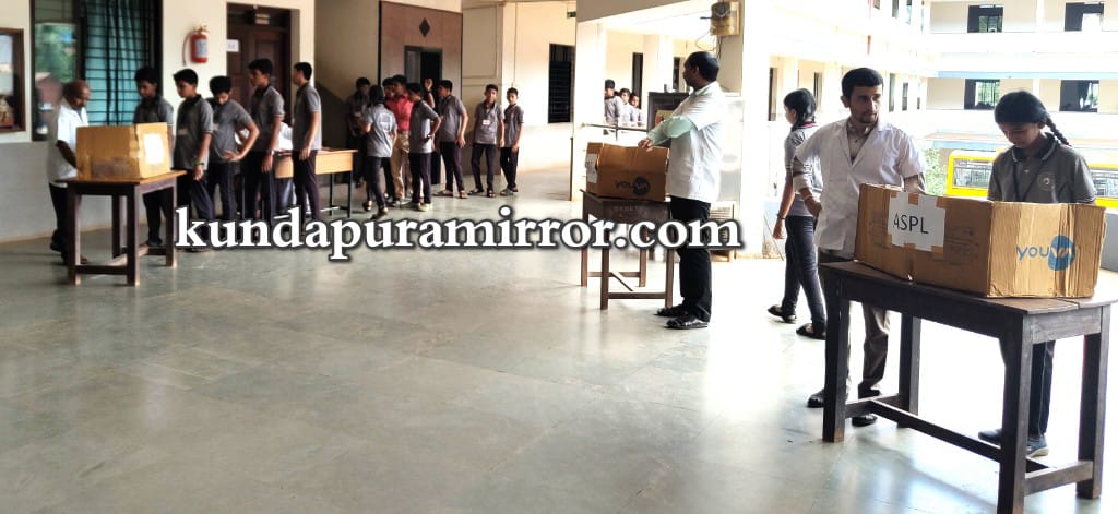 ಕುಂದಾಪುರ : ಶ್ರೀ ವೆಂಕಟರಮಣ ಆಂಗ್ಲ ಮಾಧ್ಯಮ ಪ್ರೌಢ ಶಾಲೆಯಲ್ಲಿ ವಿದ್ಯಾರ್ಥಿಗಳಿಗೆ ಚುನಾವಣೆಯ ಪರಿಕಲ್ಪನೆ ಮತ್ತು ಜವಾಬ್ದಾರಿಯ ಅರಿವು ಮೂಡಿಸುವ ಉದ್ದೇಶದಿಂದ ಪ್ರಸ್ತುತ ಸಾಲಿನ ವಿದ್ಯಾರ್ಥಿ ನಾಯಕ ಮತ್ತು ಉಪನಾಯಕರ ಸ್ಥಾನಕ್ಕೆ ಚುನಾವಣೆಯನ್ನು ನಡೆಸಲಾಯಿತು. ಸಾರ್ವತ್ರಿಕ ಚುನಾವಣೆಯ ಅರಿವು ಮೂಡಿಸುವ ಸಲುವಾಗಿ ಚುನಾವಣೆಯನ್ನು ಇ.ವಿ.ಎಮ್ ಆಪ್ ಮೂಲಕ ನಡೆಸಲಾಯಿತು.