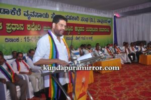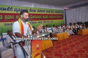 ಕುಂದಾಪುರ :ಸಹಕಾರ ಸಂಘಗಳಿಗೆ ಸೇವೆಯೇ ಉಸಿರು ಆದರೂ ಕೂಡಾ ಭವಿಷ್ಯದ ದೃಷ್ಟಿಯಿಂದ ಲಾಭದ ಬಗ್ಗೆಯೂ ಚಿಂತನೆಗಳನ್ನು ಹಾಕಿಕೊಳ್ಳುವುದು ಕೂಡಾ ಅಗತ್ಯ ಎಂದು ದ.ಕ ಜಿಲ್ಲಾ ಕೇಂದ್ರ ಸಹಕಾರಿ ಬ್ಯಾಂಕ್ ನಿ., ಮಂಗಳೂರು ಇದರ ಅಧ್ಯಕ್ಷರು ಹಾಗೂ ಕರ್ನಾಟಕ ರಾಜ್ಯ ಸಹಕಾರ ಮಾರಾಟ ಮಹಾ ಮಂಡಳ ನಿ, ಬೆಂಗಳೂರು ಇದರ ಅಧ್ಯಕ್ಷರಾದ ಡಾ.ಎಂ.ಎನ್.ರಾಜೇಂದ್ರ ಕುಮಾರ್ ಹೇಳಿದರು.