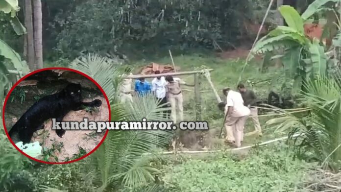 ಕುಂದಾಪುರ :ಬ್ರಹ್ಮಾವರ ತಾಲೂಕು ಶಿರೂರು ಹೆಮ್ಮಣಿಕೆ ಕೃಷ್ಣ ನಾಯ್ಕ ಅವರ ತೆರೆದ ಬಾವಿಗೆ ಜೂ.14ರಂದು ಅಪರೂಪದ ಕಪ್ಪು ಚಿರತೆ ಬಿದ್ದಿದ್ದು ಶನಿವಾರ ಬಾವಿಯಲ್ಲಿ ಚಿರತೆ ಇರುವುದು ಗೊತ್ತಾಯಿತು. ಪಕ್ಕದ ರಬ್ಬರ್ ಪ್ಲಾಂಟೇಶನ್ ಮಾಲಕರಾದ ಶೇಖರ ಶೆಟ್ಟಿಯವರ ಗಮನ ತಂದಾಗ ಶೇಖರ ಶೆಟ್ಟಿವರು ಸ್ಥಳೀಯ ವಂಡಾರು ಅರಣ್ಯ ಇಲಾಖೆಯ ಅಧಿಕಾರಿಗಳಿಗೆ ಮಾಹಿತಿ ನೀಡಿದರು. ಕೂಡಲೇ ಸ್ಥಳಕ್ಕೆ ಆಗಮಿಸಿದ ಅರಣ್ಯ ಇಲಾಖೆ ಸಿಬ್ಬಂದಿಗಳು, ಸ್ಥಳೀಯರು ಕಾರ್ಯಾಚರಣೆ ನಡೆಸಿ ಕಪ್ಪು ಚಿರತೆಯನ್ನು ಸುರಕ್ಷಿತವಾಗಿ ಮೇಲೆ ತರಲಾಯಿತು. ಬಾವಿಯಿಂದ ಮೇಲೆ ಬಂದ ಕಪ್ಪು ಚಿರತೆ ರಬ್ಬರ್ ತೋಟದೊಳಗೆ ಓಡಿ ಮರೆಯಾಯಿತು.
