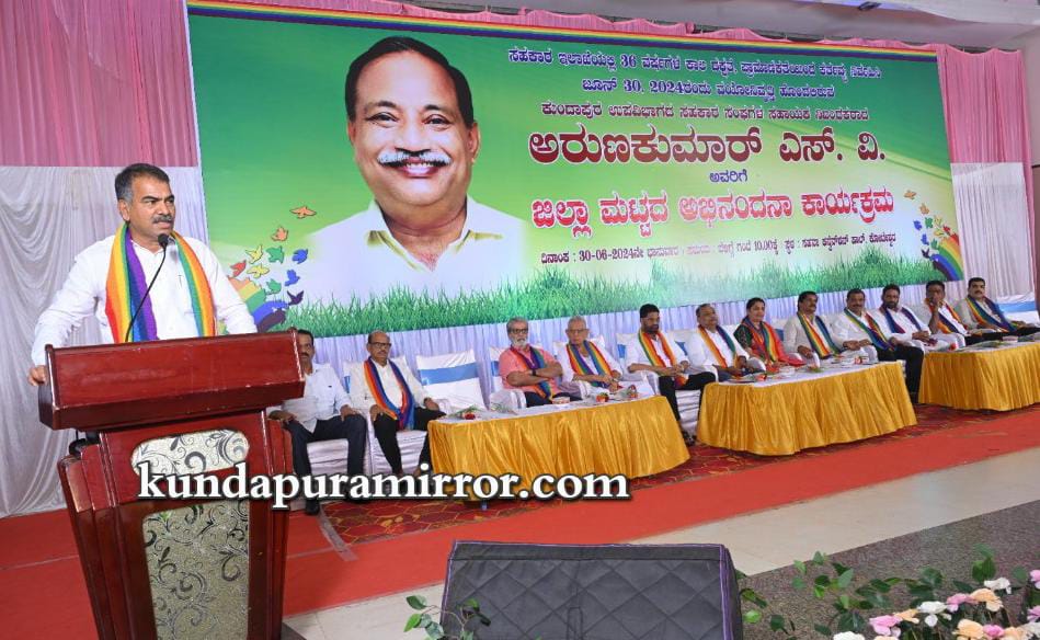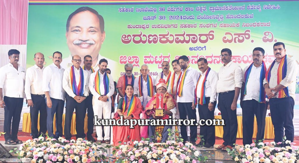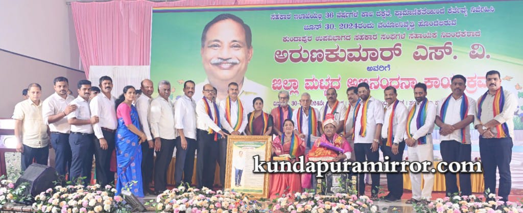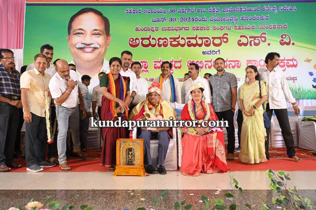 ಕುಂದಾಪುರ ಉಪ ವಿಭಾಗದ ಸಹಕಾರ ಸಂಘಗಳ ಸಹಾಯಕ ನಿಬಂಧಕ ಅರುಣ್ ಕುಮಾರ್ ಎಸ್.ವಿ ಅವರಿಗೆ ಜಿಲ್ಲಾ ಮಟ್ಟದ ಅದ್ದೂರಿಯ ಅಭಿನಂದನೆ