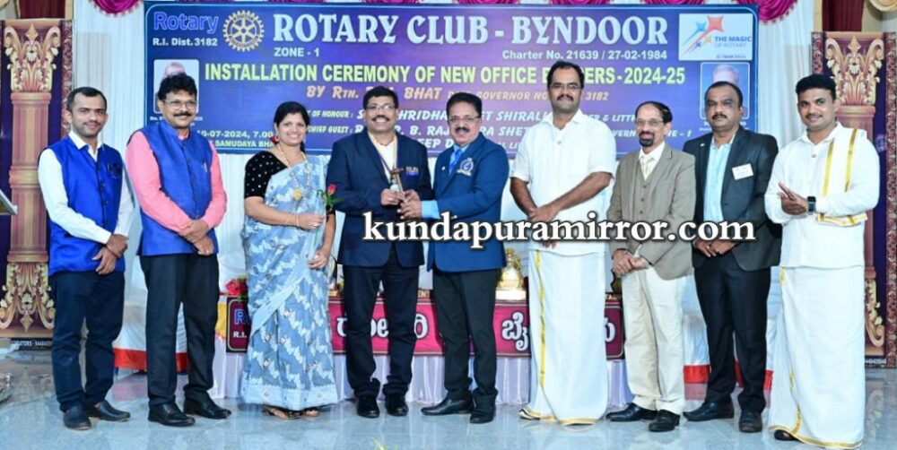 ಬೈಂದೂರು: ಸಮಾಜಕ್ಕೆ ಮಾಡುವ ಸೇವೆಯು ಬದುಕನ್ನು ಅವಿಸ್ಮರಣೀಯಗೊಳಿಸುತ್ತದೆ. ರೋಟರಿಯಿಂದ ರಚನಾತ್ಮಕ ಕೆಲಸಗಳ ಜೊತೆಗೆ ಈ ನೆಲ, ಜಲ ಪ್ರಕೃತಿಯನ್ನು ಸಂರಕ್ಷಿಸುವ ಕಾರ್ಯ ಇನ್ನಷ್ಟು ಆಗಬೇಕಿದ್ದು, ಪ್ರತಿಯೋರ್ವ ರೋಟರಿ ಸದಸ್ಯರು ಇದರೊಂದಿಗೆ ಕೈಜೋಡಿಸಬೇಕು ಎಂದು ರೋಟರಿ ಜಿಲ್ಲಾ ಗವರ್ನರ್ ನಾಮಿನಿ ಬಿ.ಎಂ. ಭಟ್ ಹೇಳಿದರು.