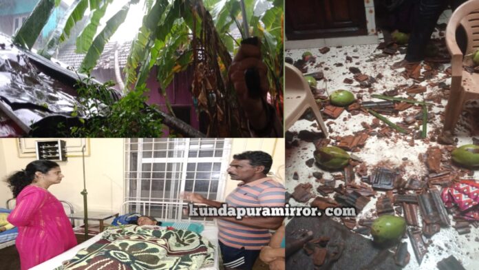 ಕುಂದಾಪುರ: ನಗರದ ಖಾರ್ವಿಕೇರಿಯ ಕೆಳಕೇರಿ ಬಸವ ಖಾರ್ವಿ ಎಂಬುವರ ಮನೆಯ ಮೇಲೆ ತೆಂಗಿನ ಮರ ಬಿದ್ದ ಪರಿಣಾಮಮನೆ ಸಂಪೂರ್ಣ ಹಾನಿಗೀಡಾಗಿದ್ದಲ್ಲದೇ ಮನೆಯೊಳಗಿದ್ದ ಮೂವರು ಗಾಯಗೊಂಡು ಆಸ್ಪತ್ರೆ ಸೇರಿದ ಘಟನೆ ಬುಧವಾರ ನಡೆದಿದೆ.