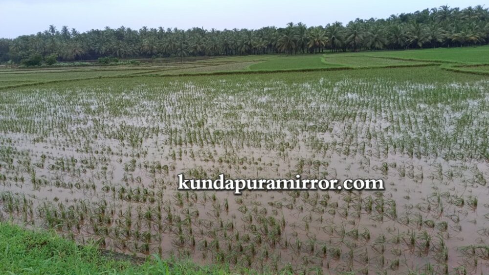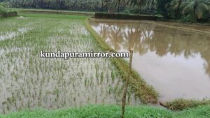 ಸೌಪರ್ಣಿಕ ನದಿ ನೀರಿನ ಪ್ರಮಾಣ ಅಪಾರ ಪ್ರಮಾಣದಲ್ಲಿ ಹೆಚ್ಚಾಗಿದ್ದು ಐದು ದಿನಗಳಿಂದ ನೆರೆ ಇಳಿಮುಖ ಕಾಣದಿರುವ ಪರಿಸ್ಥಿತಿ ಉಂಟಾದಾಗ ಭತ್ತದ ಕೃಷಿ ನಾಶವಾಗಿದೆ