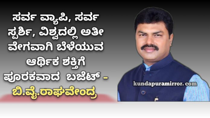 ಬೈಂದೂರು :ನರೇಂದ್ರ ಮೋದೀಜಿಯವರ ನೇತೃತ್ವದ ಕೇಂದ್ರ ಸರ್ಕಾರದ ವಿತ್ತ ಸಚಿವೆ ನಿರ್ಮಲಾ ಸೀತಾರಾಮನ್ ಅವರು ಸತತ 7ನೇ ಬಾರಿಗೆ ಮಂಡಿಸಿರುವ ಬಜೆಟ್ ಸರ್ವ ವ್ಯಾಪಿ, ಸರ್ವ ಸ್ಪರ್ಶಿಯಾಗಿದ್ದು, ದೇಶವು ವಿಶ್ವದಲ್ಲಿ ಆರ್ಥಿಕವಾಗಿ ಅತೀ ವೇಗವಾಗಿ ಬೆಳೆಯಲು ಪೂರಕವಾದ ಬಜೆಟ್ ಆಗಿದೆ. ಹಣದುಬ್ಬರ ಪ್ರಮಾಣವು ಕಳೆದ ವರ್ಷ 5.8% ಇದ್ದು, 4.5 % ಇಳಿಯುವಲ್ಲಿ ಈ ಬಜೆಟ್ ಸಹಕಾರಿಯಾಗಲಿದೆ. ಅಲ್ಲದೇ ಪ್ರಸ್ತುತ ಈಗಿರುವ 3 ಟ್ರಿಲಿಯನ್ ಆರ್ಥಿಕ ವ್ಯವಹಾರವು 5 ಟ್ರಿಲಿಯನ್ ಅಷ್ಟಾಗುವ ಎಲ್ಲಾ ನಿರೀಕ್ಷೆಯಿದ್ದು ಜಿಡಿಪಿ ಪ್ರಮಾಣವು ಶೇ. 6.5 ರಿಂದ 7 ಕ್ಕೆ ಏರಿಕೆಯಾಗುವುದಾಗಿ ಆರ್ಥಿಕ ತಜ್ಞರು ಅಭಿಪ್ರಾಯ ವ್ಯಕ್ತಪಡಿಸಿದ್ದಾರೆ.