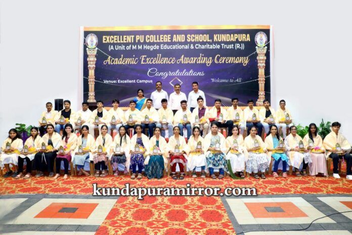 ಕುಂದಾಪುರ :ಸುಣ್ಣಾರಿಯ ಎಕ್ಸಲೆಂಟ್ ಕಾಲೇಜ್ ನಲ್ಲಿ ವಿವಿಧ ಸ್ಪರ್ಧಾತ್ಮಕ ಪರೀಕ್ಷೆ ಹಾಗೂ ದ್ವಿತೀಯ ಪಿಯುಸಿ ಇಲಾಖಾ ಪರೀಕ್ಷೆಯಲ್ಲಿ ರ್ಯಾಂಕ್ ವಿಜೇತ 37 ವಿಧ್ಯಾರ್ಥಿಗಳಿಗೆ ಕಾಲೇಜಿನ ಆಡಳಿತ ಮಂಡಳಿಯಾದ ಎಂ.ಎಂ.ಹೆಗ್ಡೆ ಎಜುಕೇಶನಲ್ & ಚಾರಿಟೇಬಲ್ ಟ್ರಸ್ಟ್ ವತಿಯಿಂದ ಸನ್ಮಾನಿಸಲಾಯಿತು.