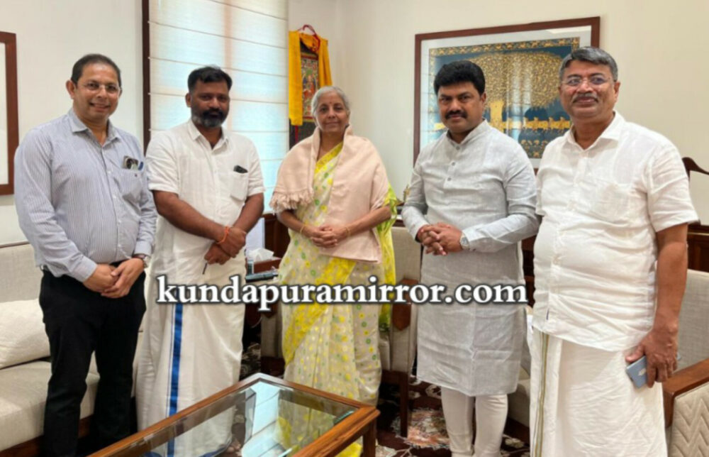ಬೈಂದೂರು :ಸಂಸದ ಬಿ. ವೈ.ರಾಘವೇಂದ್ರ ಅವರು ಬೈಂದೂರು ಶಾಸಕರಾದ ಗುರುರಾಜ್ ಶೆಟ್ಟಿ ಗಂಟಿಹೊಳೆ ಅವರೊಂದಿಗೆ ಕೇಂದ್ರ ಹಣಕಾಸು ಸಚಿವರಾದ ನಿರ್ಮಲ ಸೀತಾರಾಮನ್ ಅವರನ್ನು ಭೇಟಿಯಾಗಿ ಶಿವಮೊಗ್ಗ ಲೋಕಸಭಾ ಕ್ಷೇತ್ರದ ಬೈಂದೂರು ವಿಧಾನಸಭಾ ವ್ಯಾಪ್ತಿಯಲ್ಲಿ ಕೊಲ್ಲೂರು ಮೂಕಾಂಬಿಕಾ ಕಾರಿಡಾರ್ ನಿರ್ಮಾಣ ಮಾಡಲು ಮನವಿ ಮಾಡಿದರು.