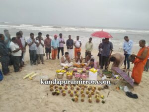 ಗಂಗೊಳ್ಳಿಯ ಅರ್ಚಕ ವೇ| ಮೂ| ವಿಟ್ಠಲ್ದಾಸ್ ಭಟ್ ಹಾಗೂ ಅಜಿತ್ ಭಟ್ ನೇತೃತ್ವದಲ್ಲಿ ಸಮುದ್ರ ಪೂಜೆಯ ಧಾರ್ಮಿಕ ವಿಧಿಗಳು ನೆರವೇರಿತು.