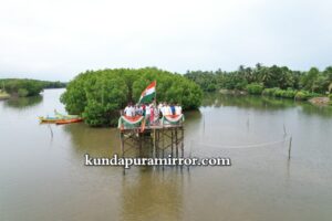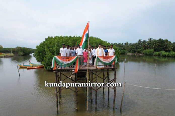 ಕಳೆದ ಬಾರಿ ಸೀತಾ ನದಿಯ ಮದ್ಯದಲ್ಲಿ ಕಯಾಕಿಂಗ್ ಮೂಲಕ ತೆರಳಿ ಅಲ್ಲಿ ಧ್ವಜ ಸ್ತಂಭ ನೆಟ್ಟು ಧ್ವಜಾರೋಹಣ ನಡೆಸಿದ ತಂಡ ಈ ಬಾರಿ ನದಿಯ ಮದ್ಯದಲ್ಲಿ ಕಾಂಡ್ಲಾ ಮರದ ನಡುವೆ ಕಾಂಡ್ಲಾ ನಡಿಗೆ ಸೇತುವೆ ರಚಿಸಿ ಧ್ವಜಾರೋಹಣ ಮಾಡಿ ಅನ್ನವಿತ್ತ ಪ್ರಕೃತಿಯಲ್ಲಿ ರಾಷ್ಟ್ರಪ್ರೇಮವನ್ನು ಉತ್ತೇಜಿಸುವ ಪ್ರಯತ್ನ ಮಾಡಿದೆ.. ಉದ್ಯಮಿಗಳಾದ ಪ್ರಮೋದ್ ಮದ್ವರಾಜ್ ಇವರು ಧ್ವಜಾರೋಹಣಗೈದು ಮಾತನಾಡಿ ಯುವಕರ ಕಾರ್ಯ ಪ್ರಶಂಸನೀಯ,ಯುವಕರಲ್ಲಿನ ರಾಷ್ಟ್ರ ಪ್ರೇಮ ಯುವ ಜನಾಂಗಕ್ಕೆ ಮಾದರಿ. ಪ್ರತೀ ಬಾರಿಯೂ ನವೀನ ಆಲೋಚನೆಗಳ ಮೂಲಕ ಕಾರ್ಯ ನಿರ್ವಹಿಸಿ ಸಮಾಜಕ್ಕೆ ಮಾದರಿಯಾಗಿದ್ದರೆ ಎಂದರು. ಪ್ರಕೃತಿ ಮಡಿಲಲ್ಲಿ ಭಾರತಾಂಬೆಯನ್ನು ನಿಲ್ಲಿಸಿ ಜನರಿಗೆ ಪ್ರಕ್ರತಿ ಪ್ರೇಮದ ಜೊತೆ ದೇಶ ಪ್ರೇಮವನ್ನು ಬೆಳೆಸಿಕೊಳ್ಳಲು ಸಂದೇಶ ನೀಡಿದರು. ಸಾಲಿಗ್ರಾಮ ಕಯಾಕಿಂಗ್ ನ ಮುಖ್ಯಸ್ಥರಾದ ಮಿಥುನ್ ಕುಮಾರ್ ಮೆಂಡನ್, ಲೋಕೇಶ್ ಮತ್ತಿತರು ಉಪಸ್ಥಿತರಿದ್ದರು .