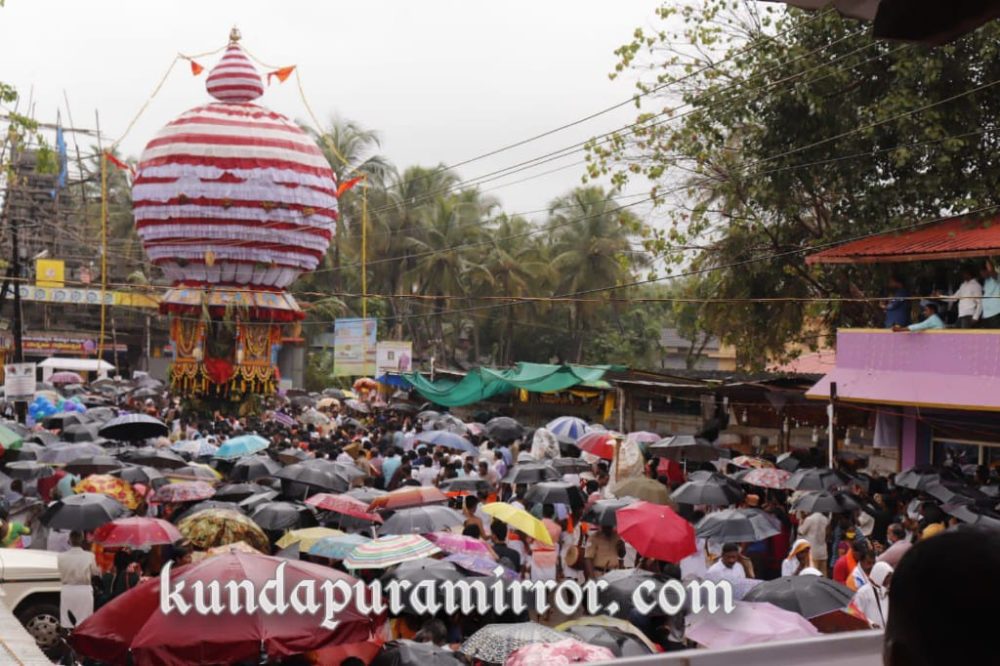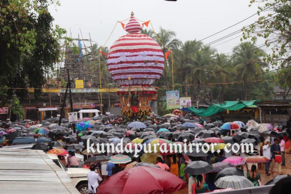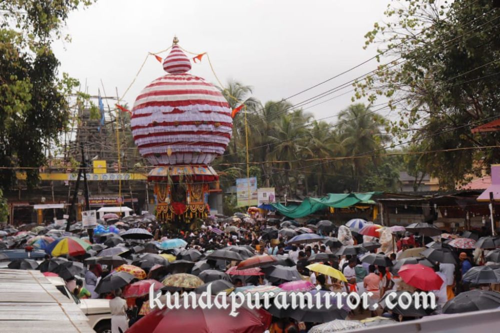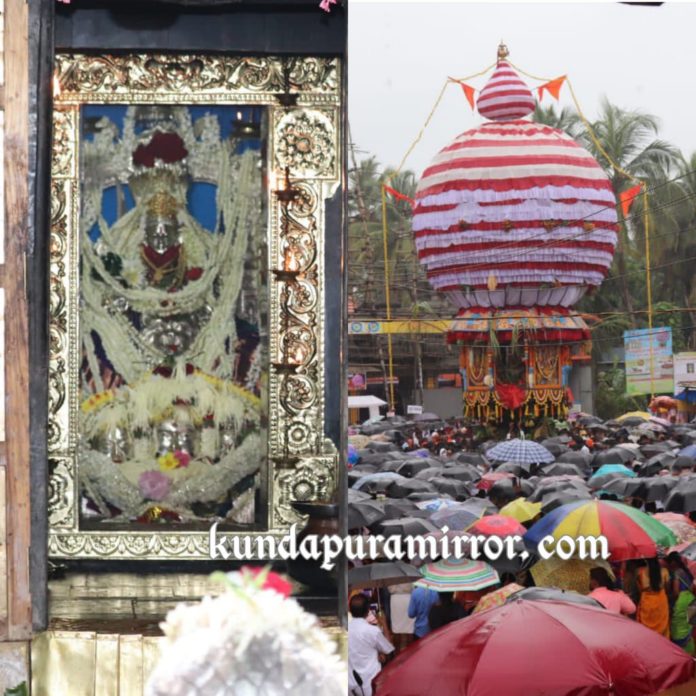 ಬೈಂದೂರು:ಪುರಾಣ ಪ್ರಸಿದ್ಧ ಉಪ್ಪುಂದ ಶ್ರೀ ದುರ್ಗಾಪರಮೇಶ್ವರಿ ದೇವಸ್ಥಾನದ ಶ್ರೀ ಮನ್ಮಹಾ ರಥೋತ್ಸವ ನ.20 ಶನಿವಾರ ನಡೆಯಿತು. ವರುಣನ ಆರ್ಭಟದ ನಡುವೆಯೂ ಕೂಡಾ ಧಾರ್ಮಿಕ ವಿಧಿವಿಧಾನದಂತೆ ರಥೋತ್ಸವ ಸಾಂಗವಾಗಿ ನಡೆಯಿತು.