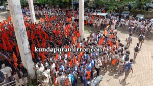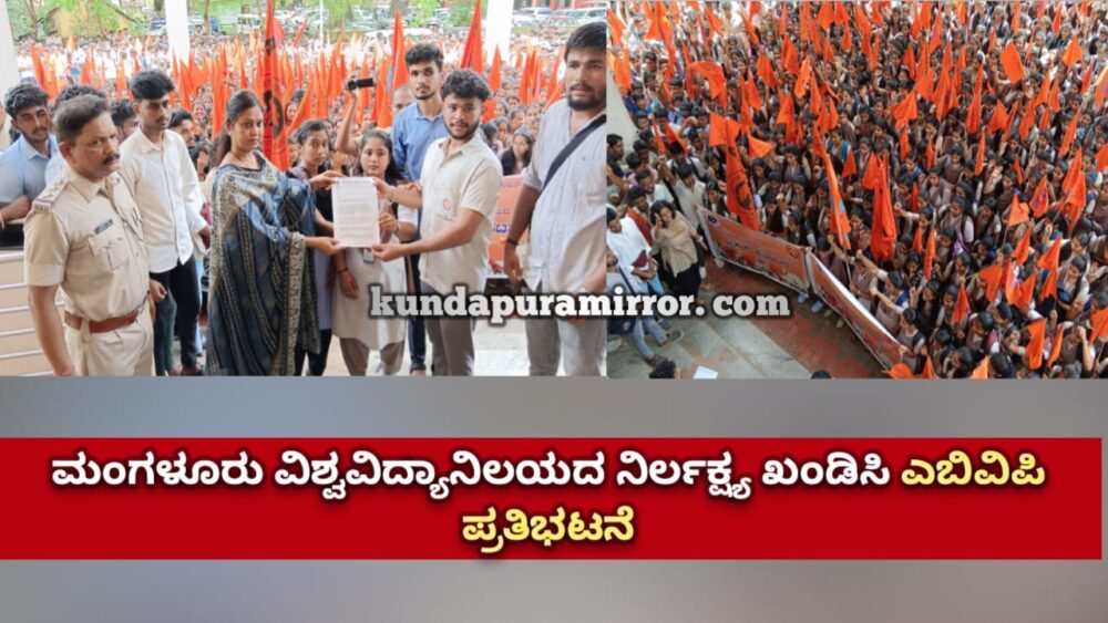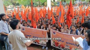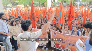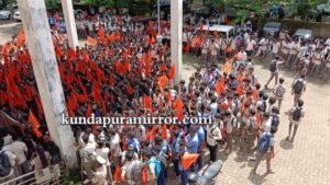 ಕುಂದಾಪುರದ ಶಾಸ್ತ್ರೀ ವೃತ್ತದಿಂದ ಮೆರವಣಿಗೆಯಲ್ಲಿ ಸಾಗಿದ ಎಬಿವಿಪಿ ವಿದ್ಯಾರ್ಥಿಗಳು, ತಾಲೂಕು ಕಚೇರಿ ಮುಮಭಾಗದಲ್ಲಿ ಪ್ರತಿಭಟನೆ ನಡೆಸಿದರು. ಬಳಿಕ ತಹಸೀಲ್ದಾರ್ ಶೋಭಾ ಲಕ್ಷ್ಮೀ ಅವರಿಗೆ ಮನವಿ ಸಲ್ಲಿಸಿ ಪ್ರತಿಭಟನೆ ಹಿಂಪಡೆದರು.