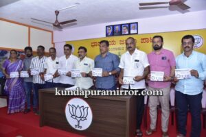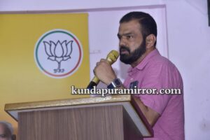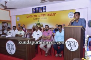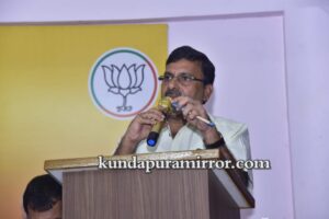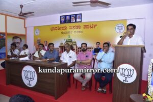 ಅವರು ಕುಂದಾಪುರ ಮಂಡಲ ಬಿಜೆಪಿ ಕಛೇರಿಯಲ್ಲಿ ನಡೆದ ಸದಸ್ಯತ್ವ ನೋಂದಣಿ ಅಭಿಯಾನ ಪೂರ್ವಭಾವಿ ಸಭೆ ಹಾಗೂ ಪುರಸಭೆ, ಪಟ್ಟಣ ಪಂಚಾಯತ್ ಅಧ್ಯಕ್ಷರು, ಉಪಾಧ್ಯಕ್ಷರಿಗೆ ಅಭಿನಂದನಾ ಕಾರ್ಯಕ್ರಮದಲ್ಲಿ ಸದಸ್ಯತ್ವ ನೊಂದಣಿಯ ಕೈಪಿಡಿ ಬಿಡುಗಡೆಗೊಳಿಸಿ ಮಾತನಾಡಿದರು.