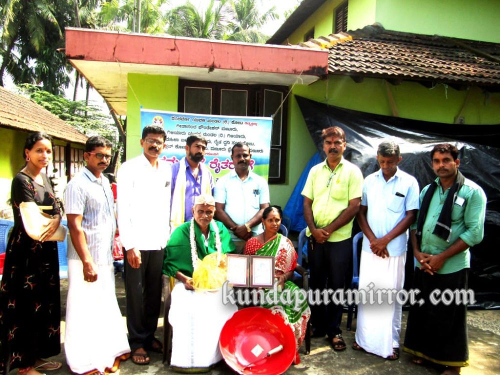 ಈ ಸಂದರ್ಭದಲ್ಲಿ ಶಿವ ಪೂಜಾರಿಯವರಿಗೆ ಕೃಷಿ ಪರಿಕರ ಹಸಿರು ಶಾಲು ತೋಡಿಸಿ ಪತ್ನಿ ಶಾರದ ಜೊತೆಗೂಡಿ ಗೌರವಿಸಲಾಯಿತು.