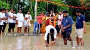 ಹಂದಟ್ಟು ಗೆಳೆಯರ ಬಳಗದ ಅಧ್ಯಕ್ಷ ಪ್ರಕಾಶ್ ಹಂದಟ್ಟು ಕೆಸರು ಗದ್ದೆಗೆ ಹಾಲೆರೆಯುವ ಮೂಲಕ ಕಾರ್ಯಕ್ರಮಕ್ಕೆ ಚಾಲನೆ ನೀಡಿದರು.
