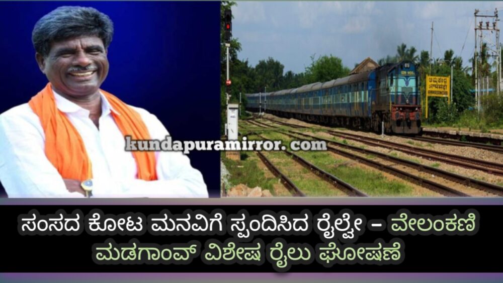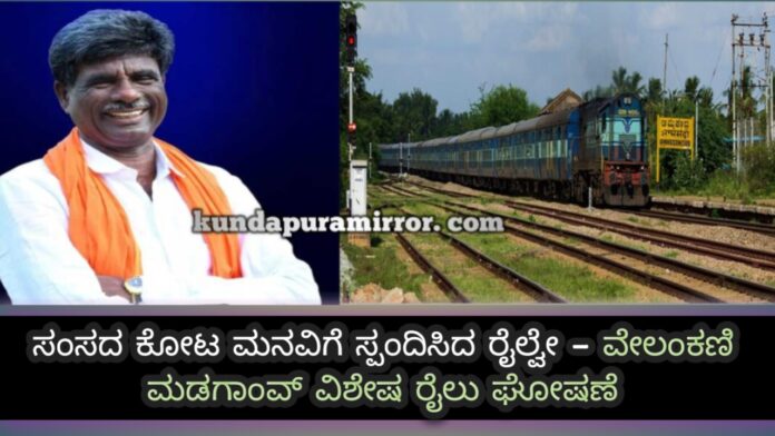 ಕೋಟ ಮನವಿಗೆ ಪ್ರತಿಕ್ರಿಯಿಸಿರುವ ರೈಲ್ವೇ ಇಲಾಖೆ, ವೇಲಂಕಣಿ ಮಡಗಾಂವ್ ಮದ್ಯೆ ವಿಶೇಷ ರೈಲು ಪ್ರಯಾಣವನ್ನು ಅಧಿಕೃತವಾಗಿ ಘೋಷಿಸಿದೆ.
