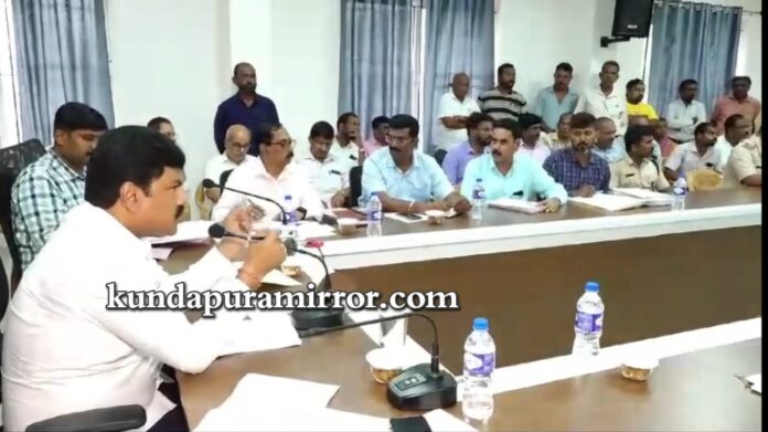 ಕುಂದಾಪುರ: ಬೈಂದೂರು ತಾಲೂಕು ಕಛೇರಿಯಲ್ಲಿ ಮಂಗಳವಾರ ಸಂಸದ ಬಿ.ವೈ.ರಾಘವೇಂದ್ರ ನೇತೃತ್ವದಲ್ಲಿ ಶಾಸಕ ಗುರುರಾಜ್ ಗಂಟಿಹೊಳೆ ಸಮಕ್ಷಮದಲ್ಲಿ ಜಿಲ್ಲಾಧಿಕಾರಿಗಳು ಮತ್ತು ಇತರ ಹಿರಿಯ ಅಧಿಕಾರಿಗಳ ಉಪಸ್ಥಿತಿಯಲ್ಲಿ ಕಾಮಗಾರಿ ಪ್ರಗತಿಪರಿಶೀಲನಾ ಸಭೆ ನಡೆಯಿತು.