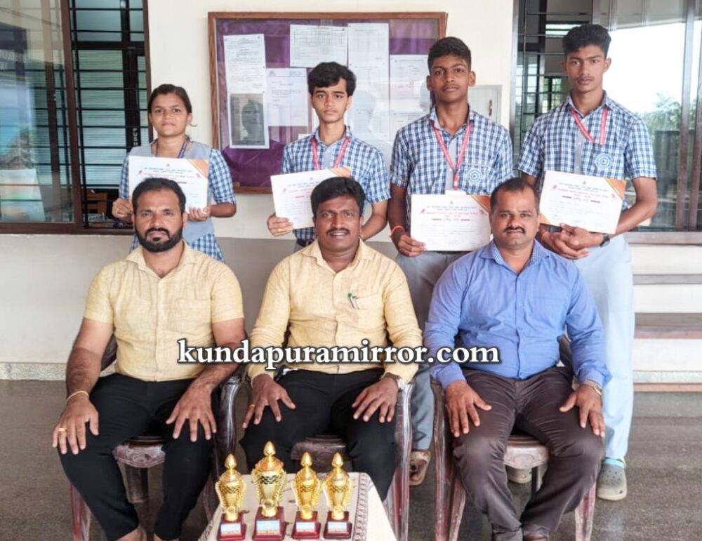 ವಿದ್ಯಾರ್ಥಿಗಳೊಂದಿಗೆ ಕಾಲೇಜಿನ ಪ್ರಾಂಶುಪಾಲರಾದ ಸಂದೀಪ್ ಗಾಣಿಗ, ಉಪ ಪ್ರಾಂಶುಪಾಲರಾದ ಸುಜಯ್ ಕೋಟೆಗಾರ್, ದೈಹಿಕ ಶಿಕ್ಷಣ ಉಪನ್ಯಾಸಕ ಕೃಷ್ಣ ಉಪಸ್ಥಿತರಿದ್ದಾರೆ.
