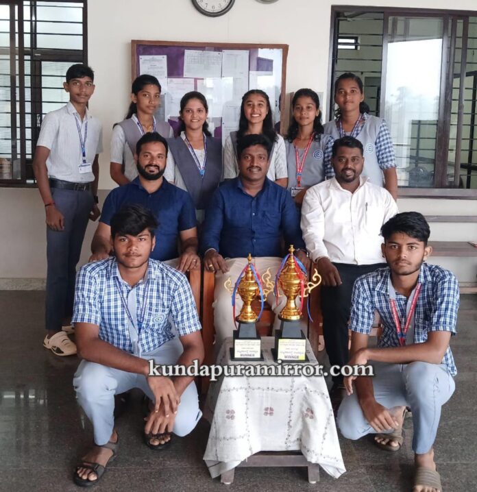 ವಿದ್ಯಾರ್ಥಿಗಳೊಂದಿಗೆ ಕಾಲೇಜು ಪ್ರಾಂಶುಪಾಲರಾದ ಸಂದೀಪ್ ಗಾಣಿಗ, ಉಪ ಪ್ರಾಂಶುಪಾಲರಾದ ಸುಜಯ್ ಕೋಟೆಗಾರ್, ದೈಹಿಕ ಶಿಕ್ಷಣ ಉಪನ್ಯಾಸಕ ರಾಘವೇಂದ್ರ ಗಾಣಿಗ ಉಪಸ್ಥಿತರಿದ್ದಾರೆ.