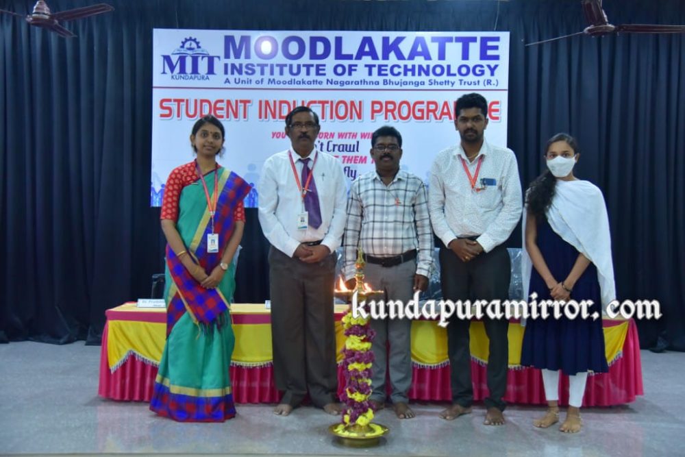 ಕುಂದಾಪುರ: ಮೂಡ್ಲಕಟ್ಟೆ ಇಂಜಿನಿಯರಿಂಗ್ ಕಾಲೇಜಿನ ಇಂಜಿನಿಯರಿಂಗ್ ಪ್ರಥಮ ವರ್ಷದ ವಿದ್ಯಾರ್ಥಿಗಳಿಗೆ ಇಂಡಕ್ಷನ್ ಮತ್ತು ಓರಿಯಂಟೇಶನ್ ಕಾರ್ಯಕ್ರಮವನ್ಮು ಮುಖ್ಯ ಅತಿಥಿ ಹಾಗೂ ಸಂಪನ್ಮೂಲ ವ್ಯಕ್ತಿಯಾಗಿ ಆರ್.ಏನ್. ಶೆಟ್ಟಿ ಪಿಯು. ಕಾಲೇಜು ಕುಂದಾಪುರ ಇದರ ಕನ್ನಡ ವಿಭಾಗದ ಮುಖ್ಯಸ್ಥರಾದ ಪ್ರೊ. ಕೃಷ್ಣಮೂರ್ತಿ ಕಾರ್ಯಕ್ರಮವನ್ನು ಉದ್ಘಾಟಿಸಿ ಮಾತನಾಡಿ “ಪ್ರತಿಯೊಬ್ಬರೂ ತಮ್ಮ ಶಿಕ್ಷಣದ ಜೊತೆಗೆ ಶಿಸ್ತು ಸಂಯಮವನ್ನು ಅಳವಡಿಸಿಕೊಳ್ಳಬೇಕು, ಪದವಿ ಜೊತೆಗೆ ಕ್ರಿಯಾಶೀಲರಾಗಿರುವುದನ್ನು ಕಲಿಯಬೇಕು. ಈ ನಿಟ್ಟಿನಲ್ಲಿ ವಿಧ್ಯಾರ್ಥಿಗಳು ಶ್ರಮ ತ್ಯಾಗ ಪ್ರಾರ್ಥನೆ ಪ್ರಯತ್ನ ಇವನ್ನು ಸಮನಾಗಿ ಪ್ರಯೋಗಿಸಿದಾಗ ಯಶಸ್ಸು ಲಭ್ಯ ” ಎಂದು ಹೇಳಿದರು.