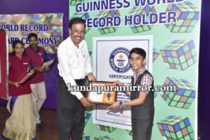 ಅವರು ಹಟ್ಟಿಯಂಗಡಿ ಸಿದ್ಧಿವಿನಾಯಕ ವಸತಿ ಶಾಲೆಯ ರಜತ ಮಹೋತ್ಸವದ ಸಂದರ್ಭದಲ್ಲಿ ರೂಬಿಕ್ಸ್ ಕ್ಯೂಬ್ ಮೂಲಕ ಎರಡು ಗಿನ್ನಿಸ್ ವಿಶ್ವ ದಾಖಲೆಗಳನ್ನು ಕಳೆದ ಶೈಕ್ಷಣಿಕ ವರ್ಷದಲ್ಲಿ ಮಾಡಿದ್ದು ಗಿನ್ನಿಸ್ ವಲ್ರ್ಡ್ ರೆಕಾರ್ಡ್ ಪ್ರಮಾಣ ಪತ್ರ ಪ್ರದಾನ ಕಾರ್ಯಕ್ರಮದಲ್ಲಿ ಗೌರವ ಅತಿಥಿಗಳಾಗಿ ಭಾಗವಹಿಸಿ ಮಾತನಾಡಿದರು.