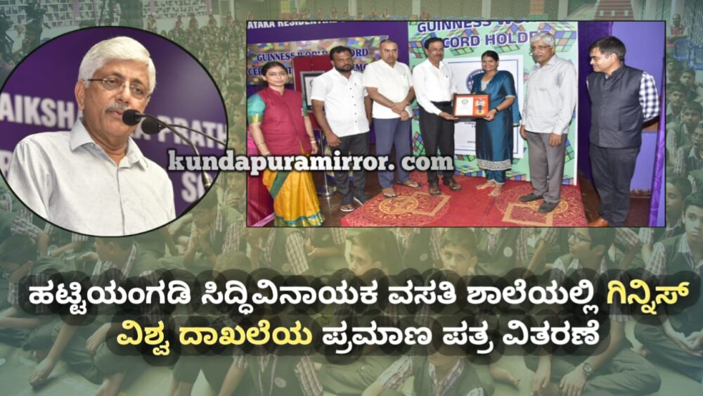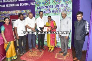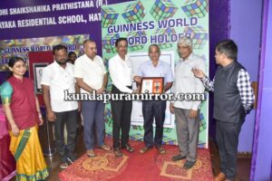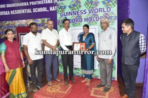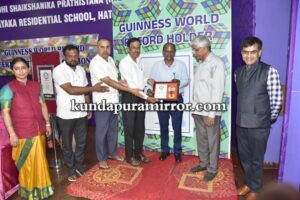 ಹಟ್ಟಿಯಂಗಡಿ ಸಿದ್ಧಿವಿನಾಯಕ ವಸತಿ ಶಾಲೆಯಲ್ಲಿ ಗಿನ್ನಿಸ್ ವಿಶ್ವ ದಾಖಲೆಯ ಪ್ರಮಾಣ ಪತ್ರ ವಿತರಣೆ