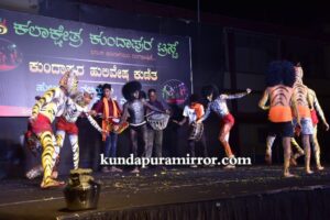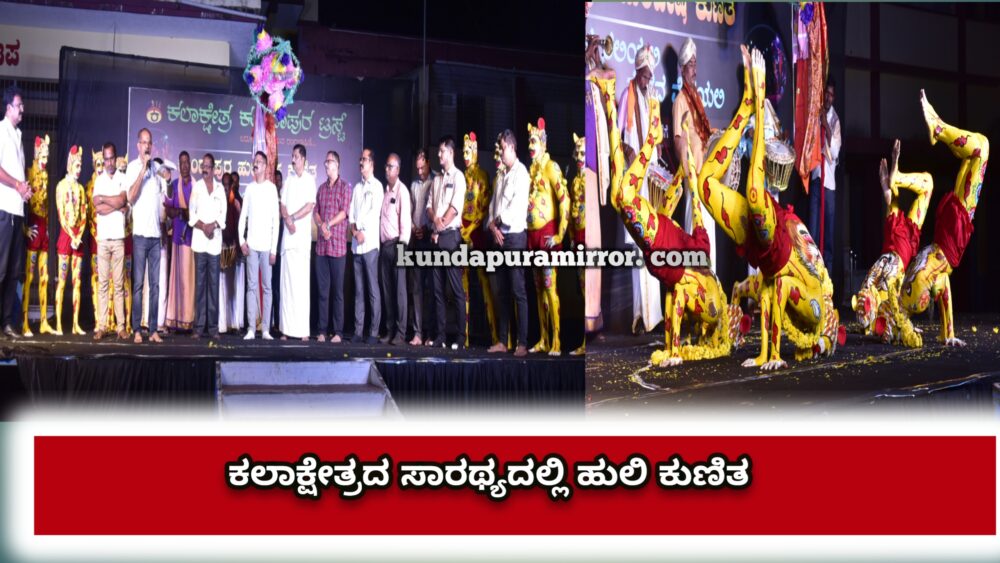 ಕುಂದಾಪುರ : ಕಲಾಕ್ಷೇತ್ರದ ಸಾರಥ್ಯದಲ್ಲಿ ಗುರುವಾರ ಸಂಜೆ ಕುಂದಾಪುರ ಬೋರ್ಡ್ ಹೈಸ್ಕೂಲ್ ಆವರಣದಲ್ಲಿ ಕುಂದಾಪುರ ಹುಲಿ ಕುಣಿತ ನಡೆಯಿತು.