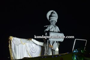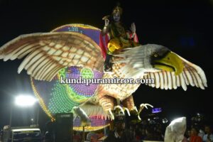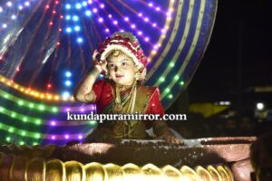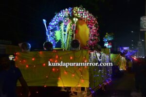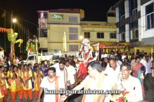 ಒಂಭತ್ತು ದಿನಗಳ ಕಾಲ ನಡೆದ ನವರಾತ್ರಿ ಉತ್ಸವದ ಕೊನೆಯ ದಿನವಾದ ಶನಿವಾರ ರಾತ್ರಿ ಕುಂದಾಪುರದ ಮುಖ್ಯ ರಸ್ತೆಯಲ್ಲಿ ಅದ್ಧೂರಿಯಾದ ಶ್ರೀದೇವಿಯ ಶೋಭಾಯಾತ್ರೆ ಮೆರವಣಿಗೆ ನಡೆಯಿತು. ನಾರಾಯಣ ಗುರುಗಳ ಸಂದೇಶ ಸಾರವಾದ ಒಂದೇ ಜಾತಿ, ಒಂದೇ ಮತ ಒಂದೇ ದೇವರು ಎನ್ನುವ ಘೋಷ ವಾಕ್ಯದೊಂದಿಗೆ ದೇವಿಯ ಪ್ರತಿಮೆಯನ್ನು ಸುಸಜ್ಜಿತವಾದ ನಂದಿಯ ವಾಹನದ ಮೇಲೆ ಕುಳ್ಳಿರಿಸಿ ಪ್ರದಕ್ಷಿಣೆ ಹಾಕಲಾಯಿತು.