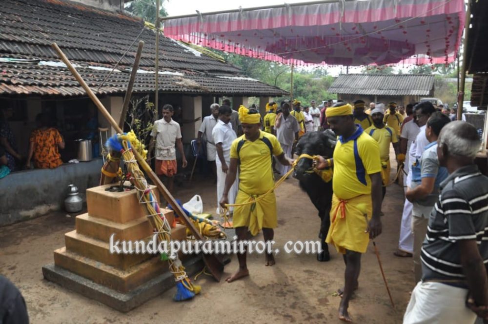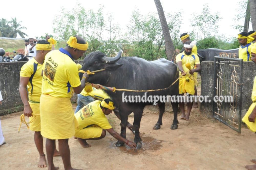 ಇಲ್ಲಿನ ಕಾರಿಕಟ್ಟೆ ಮನೆತನದವರ ಕೋಣಗಳು ಪ್ರತಿವರ್ಷ ತಗ್ಗರ್ಸೆ ಕಂಬಳ ಗದ್ದೆಗೆ ವಿಶೇಷ ವೇಷಭೂಷಣ, ವಾದ್ಯ, ಚೆಂಡೆ, ಡೋಲು ವಾದನಗಳ ಜೊತೆ ಹೆಜ್ಜೆ ಹಾಕಿ ಬರುವುದು ರೂಢಿ. ಕಳೆದ 37 ವರ್ಷಗಳಿಂದ ಬೈಂದೂರು ವಲಯ ಕಂಬಳ ಸಮಿತಿ ಅಧ್ಯಕ್ಷ ವೆಂಕಟ ಪೂಜಾರಿ ನೇತೃತ್ವದಲ್ಲಿ ಮನೆಯಲ್ಲಿ ಪೂಜಾ ವಿಧಿವಿಧಾನಗಳನ್ನು ನಡೆಸಿ ಕಂಬಳಗದ್ದೆಗೆ ಕೋಣಗಳನ್ನು ಕರೆತರಲಾಯಿತು.