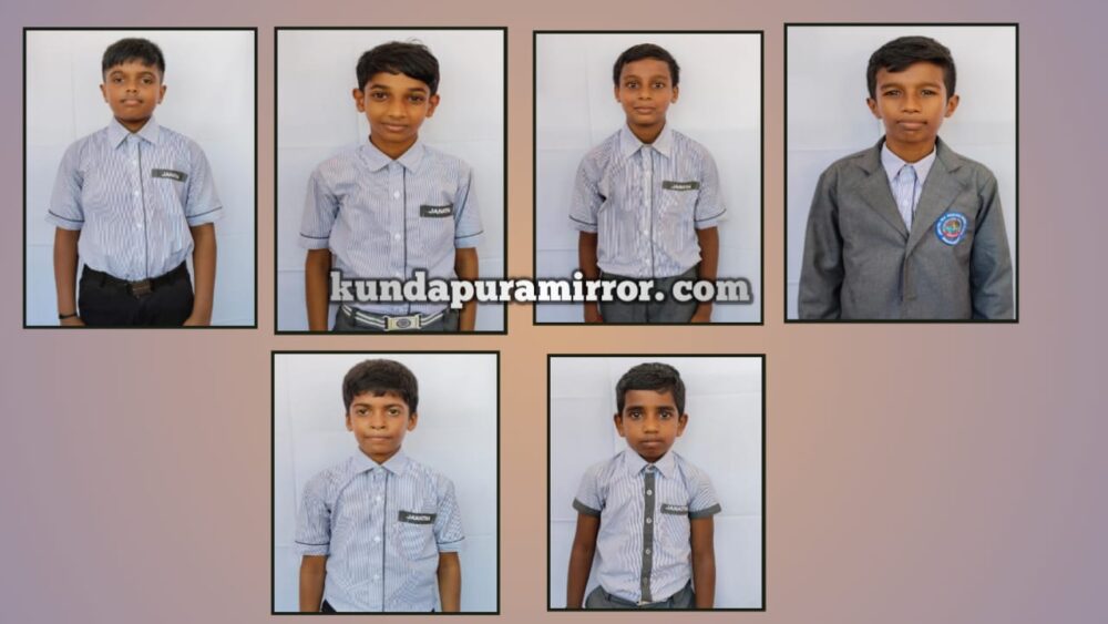 ಕುಂದಾಪುರ :ಉತ್ತರ ಕನ್ನಡ ಕರಾಟೆ ಅಸೋಸಿಯೇಷನ್ ಭಟ್ಕಳ ಇವರು ಆಯೋಜಿಸಿದ ರಾಷ್ಟ್ರಮಟ್ಟದ ಕರಾಟೆ ಪಂದ್ಯಾಟದ ಕುಮಿಟೆ ವಿಭಾಗದಲ್ಲಿ ಆರ್ಯನ್ (8ನೇ ತರಗತಿ), ರಜತ್ (7ನೇ ತರಗತಿ) ಚಿನ್ನದ ಪದಕ ಹಾಗೂ ಗಗನ್ ( 6ನೇ ತರಗತಿ) ಕಂಚಿನ ಪದಕವನ್ನು ಗಳಿಸಿರುತ್ತಾರೆ.