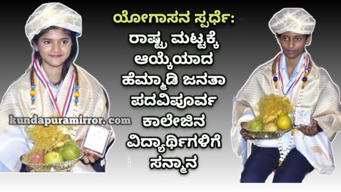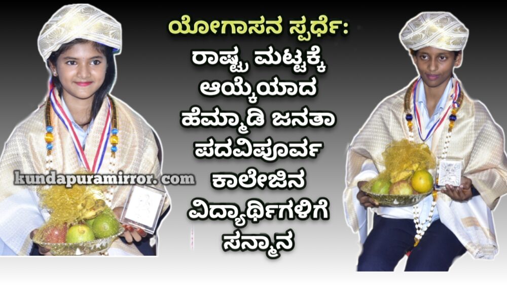 ಕುಂದಾಪುರ :ರಾಜ್ಯ ಮಟ್ಟದ ಯೋಗಾಸನ ಸ್ಪರ್ಧೆಯಲ್ಲಿ ಬಾಲಕಿಯರ ವಿಭಾಗದಲ್ಲಿ ಉಡುಪಿ ಜಿಲ್ಲೆಯ ಯೋಗಾಸನ ತಂಡವನ್ನು ಪ್ರತಿನಿಧಿಸಿದ ಜನತಾ ಪದವಿಪೂರ್ವ ಕಾಲೇಜಿನ ವಿದ್ಯಾರ್ಥಿನಿಯರಾದ ನಿರೀಕ್ಷಾ ಮತ್ತು ತನ್ವಿತಾ ಪ್ರಥಮ ಸ್ಥಾನ ಪಡೆದು ರಾಷ್ಟ್ರ ಮಟ್ಟಕ್ಕೆ ಅಯ್ಕೆಯಾಗಿದ್ದು, ಇವರಿಗೆ ಕಾಲೇಜಿನ ಪ್ರಾಂಶುಪಾಲರಾದ ಗಣೇಶ್ ಮೋಗವೀರ ಮನೆಗೆ ತೆರಳಿ ಸಾಧಕ ವಿದ್ಯಾರ್ಥಿಗಳಿಗೆ ಸನ್ಮಾನಿಸಿ, ಅಭಿನಂದಿಸಿದರು.