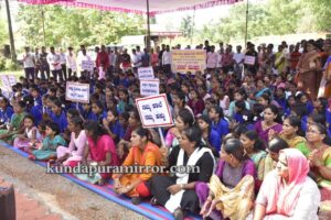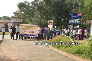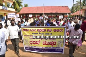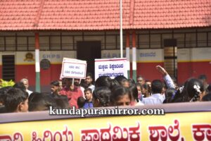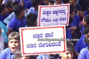 ಕುಂದಾಪುರ :ಸರಕಾರಿ ಹಿರಿಯ ಪ್ರಾಥಮಿಕ ಶಾಲೆ ಕಾಳಾವರ ಶತಮಾನೋತ್ಸವದ ಪೂರೈಸಿದ ಶಾಲೆಯಾಗಿದ್ದು ಶಾಲೆಯ ಆಸ್ತಿ ಪರಬಾರೆ ಆಗುತ್ತಿರುವುದನ್ನು ವಿರೋಧಿಸಿ ಮಕ್ಕಳ ಹಕ್ಕುಗಳ ರಕ್ಷಣೆಗಾಗಿ ಕಾಳಾವರ ಪಂಚಾಯತ್ ಎದುರು ಧರಣಿ ಸತ್ಯಾಗೃಹ ನಡೆಯಿತು.