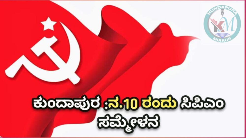 ಕುಂದಾಪುರ: ಕುಂದಾಪುರ ತಾಲೂಕು ಸರ್ವಾಂಗೀಣ ಅಭಿವ್ರದ್ಧಿಗಾಗಿ, ಸೌಹಾರ್ದ ಕುಂದಾಪುರಕ್ಕಾಗಿ ಸಿಪಿಎಂ ಪಕ್ಷದ 4 ನೇ ಕುಂದಾಪುರ ವಲಯ ಸಮ್ಮೇಳನ ನವೆಂಬರ್ 10 ರಂದು ಕುಂದಾಪುರ ಹಂಚು ಕಾರ್ಮಿಕರ ಭವನದಲ್ಲಿ ನಡೆಯಲಿದೆ ಎಂದು ಸಿಪಿಎಂ ಪಕ್ಷದ ಪ್ರಕಟಣೆ ತಿಳಿಸಿದೆ.