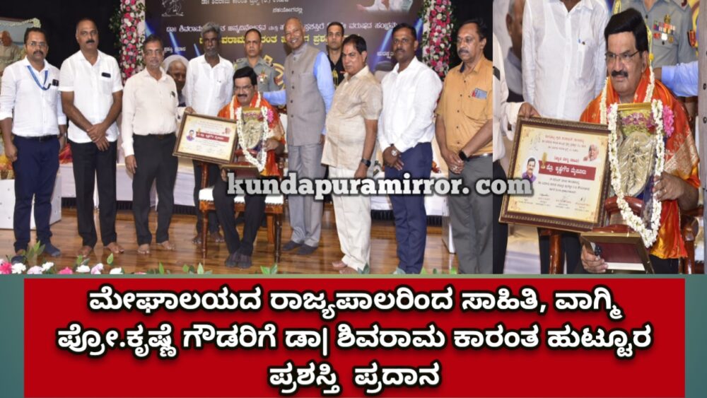ಕುಂದಾಪುರ :ಕಾರಂತರ ಹುಟ್ಟಿದ ನೆಲದಲ್ಲಿ ಧನ್ಯತೆಭಾವ ಮೈದುಂಬಿದೆ ಅಲ್ಲದೆ ಪ್ರಶಸ್ತಿ ಸ್ವೀಕರಿಸಿದ ನನ್ನ ಗೌರವ ಉತ್ತುಂಗಕ್ಕೆರಿಸಿದೆ ಎಂದು ಕನ್ನಡ ಶ್ರೇಷ್ಠ ವಾಗ್ಮಿ ಸಾಹಿತಿ ಪ್ರೋ.ಕೃಷ್ಣೆ ಗೌಡ ಮೈಸೂರು ನುಡಿದರು.