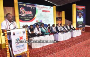ಅವರು ರವಿವಾರ ಇಲ್ಲಿನ ಈಸ್ಟ್ ವೆಸ್ಟ್ ಕ್ಲಬ್ನಲ್ಲಿ ರೋಟರಿ ಕ್ಲಬ್ ಮಿಡ್ಟೌನ್ ಸಾರಥ್ಯದಲ್ಲಿ ರೋಟರಿ ಜಿಲ್ಲಾ ಸಾಂಸ್ಕೃತಿಕ ಉತ್ಸವ ದಿಗಣ ಕುಂದ ನೆಲೆಯಲಿ ಕಲೆಯ ಅಲೆ ಕಾರ್ಯಕ್ರಮ ಉದ್ಘಾಟಿಸಿ ಮಾತನಾಡಿದರು.