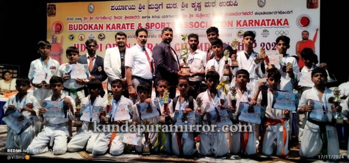 ಕಿರಿಮಂಜೇಶ್ವರ: ಬುಡೋಕೋನ್ ಕರಾಟೆ ಮತ್ತು ಸ್ಪೋರ್ಟ್ಸ್ ಅಸೋಸಿಯೇಷನ್ ಕರ್ನಾಟಕ ಇವರ ವತಿಯಿಂದ ಶ್ರೀ ಕೃಷ್ಣ ಮಠ ಉಡುಪಿಯಲ್ಲಿ ನಡೆದ ಉಡುಪಿ ಮುಕ್ತ ಕರಾಟೆ ಚಾಂಪಿಯನ್ ಶಿಪ್ ರಾಷ್ಟ್ರೀಯ ಮಟ್ಟದ ಕರಾಟೆ ಪಂದ್ಯಾವಳಿ 2024 ರಲ್ಲಿ ಜನತಾ ನ್ಯೂ ಇಂಗ್ಲೀಷ್ ಮೀಡಿಯಂ ಸ್ಕೂಲ್ ನ ಅಶ್ವಿನ್ ಪೂಜಾರಿ (6ನೇ ತರಗತಿ) ಕುಮಿಟೆ ವಿಭಾಗದಲ್ಲಿ ಚಿನ್ನ ಮತ್ತು ಕಟಾ ವಿಭಾಗದಲ್ಲಿ ಕಂಚಿನ ಪದಕ , ಅನ್ವೇಷಣ್ (7ನೇ ತರಗತಿ) ಕುಮಿಟೆ ವಿಭಾಗದಲ್ಲಿ ಚಿನ್ನ ಮತ್ತು ಕಟಾ ವಿಭಾಗದಲ್ಲಿ ಬೆಳ್ಳಿ, ಹರ್ಷಿತಾ ಎ ಖಾರ್ವಿ (3ನೇ ತರಗತಿ) ಕುಮಿಟೆ ವಿಭಾಗದಲ್ಲಿ ಚಿನ್ನ ಮತ್ತು ಕಟಾ ವಿಭಾಗದಲ್ಲಿ ಬೆಳ್ಳಿ , ರಿಷಿಕ್ (7ನೇ ತರಗತಿ) ಕಟಾ ವಿಭಾಗದಲ್ಲಿ ಚಿನ್ನ ಮತ್ತು ಕುಮಿಟೆ ವಿಭಾಗದಲ್ಲಿ ಬೆಳ್ಳಿ, ಆರ್ಯನ್ ವಿ (7ನೇ ತರಗತಿ) ಕಟಾ ವಿಭಾಗದಲ್ಲಿ ಚಿನ್ನ ಮತ್ತು ಕುಮಿಟೆಯಲ್ಲಿ ಬೆಳ್ಳಿ, ರಜತ್ (7ನೇ ತರಗತಿ) ಕಟಾ ವಿಭಾಗದಲ್ಲಿ ಚಿನ್ನ ಮತ್ತು ಕುಮಿಟೆ ವಿಭಾಗದಲ್ಲಿ ಬೆಳ್ಳಿ, ಎಸ್ ಎನ್ ಸುಶಾನ್( 8ನೇ ತರಗತಿ) ಕಟಾ ವಿಭಾಗದಲ್ಲಿ ಚಿನ್ನ ಮತ್ತು ಕುಮಿಟೆಯಲ್ಲಿ ಕಂಚಿನ ಪದಕ, ಶ್ರೀನಿಧಿ (8ನೇ ತರಗತಿ) ಕಟಾ ವಿಭಾಗದಲ್ಲಿ ಚಿನ್ನ ,ಆರ್ಯನ್ ಎ ಪೂಜಾರಿ (8ನೇ ತರಗತಿ) ಕಟಾ ವಿಭಾಗದಲ್ಲಿ ಚಿನ್ನ , ರಿತ್ವಿಕ್ (8ನೇ ತರಗತಿ) ಕಟಾ ವಿಭಾಗದಲ್ಲಿ ಚಿನ್ನ ಮತ್ತು ಕುಮಿಟೆ ವಿಭಾಗದಲ್ಲಿ ಬೆಳ್ಳಿ, ಶುಭಾಂಗ್ (4ನೇ ತರಗತಿ)ಕಟಾ ಮತ್ತು ಕುಮಟೆ ವಿಭಾಗದಲ್ಲಿ ಬೆಳ್ಳಿ, ಭರತ್ (7ನೇ ತರಗತಿ) ಕಟಾ ವಿಭಾಗದಲ್ಲಿ ಬೆಳ್ಳಿ, ಆರಾಧ್ಯ ಬಿ (6ನೇ ತರಗತಿ) ಕಟಾ ಮತ್ತು ಕುಮಿಟೆ ವಿಭಾಗದಲ್ಲಿ ಕಂಚಿನ ಪದಕ, ಶ್ರೀಶಾ (4ನೇ ತರಗತಿ) , ಗಗನ್ (6ನೇ ತರಗತಿ), ಮನೋಜ್ (7ನೇ ತರಗತಿ), ಆದಿತ್ಯ (7ನೇ ತರಗತಿ) ಶ್ರೀಶಾಂತ (7ನೇ ತರಗತಿ)ಕಟಾ ವಿಭಾಗದಲ್ಲಿ ಕಂಚಿನ ಪದಕಗಳನ್ನು ಗಳಿಸಿರುತ್ತಾರೆ.