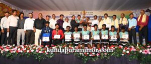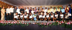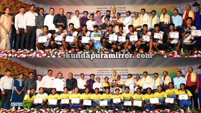 ಕುಂದಾಪುರ :ಶಾಲಾ ಶಿಕ್ಷಣ ಇಲಾಖೆ ಪದವಿಪೂರ್ವ ಹಾಗೂ ಕೊಲ್ಲೂರು ಶ್ರೀ ಮೂಕಾಂಬಿಕಾ ದೇವಳದ ಸ್ವತಂತ್ರ ಪದವಿ ಪೂರ್ವ ಕಾಲೇಜು ಇವರ ಸಂಯುಕ್ತ ಆಶ್ರಯದಲ್ಲಿ ಮೂಕಾಂಬಿಕಾ ಕ್ರೀಡಾಂಗಣದಲ್ಲಿ ಕಾಲೇಜು ಬಾಲಕ – ಬಾಲಕಿಯರ ರಾಜ್ಯಮಟ್ಟದ ಹೊನಲು ಬೆಳಕಿನ ನೆಟ್ ಬಾಲ್ ಪಂದ್ಯಾಟದ ಸಮಾರೋಪ ಸಮಾರಂಭ ಹಾಗೂ ಬಹುಮಾನ ವಿತರಣಾ ಸಮಾರಂಭ ಶನಿವಾರ ಸಂಜೆ ನಡೆಯಿತು.