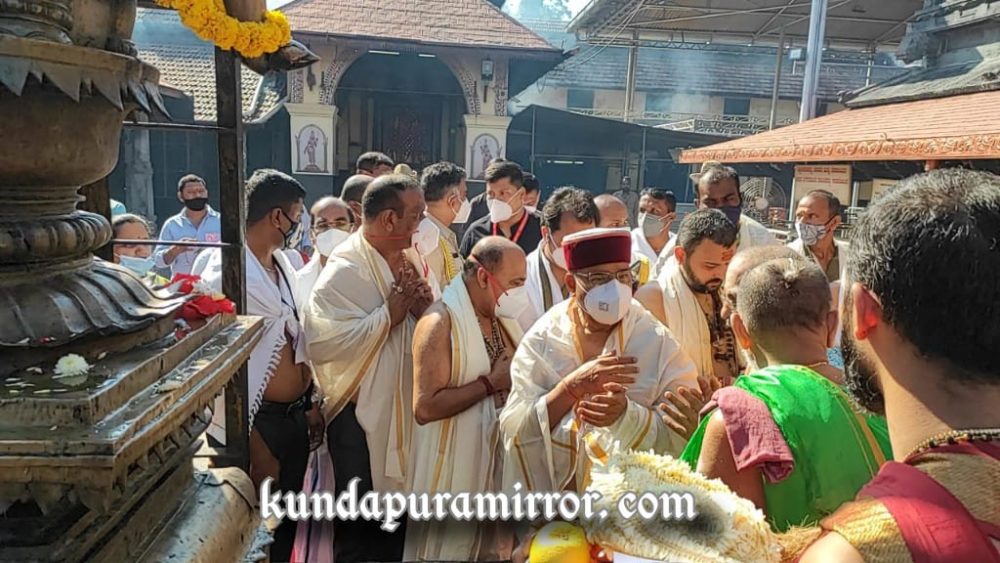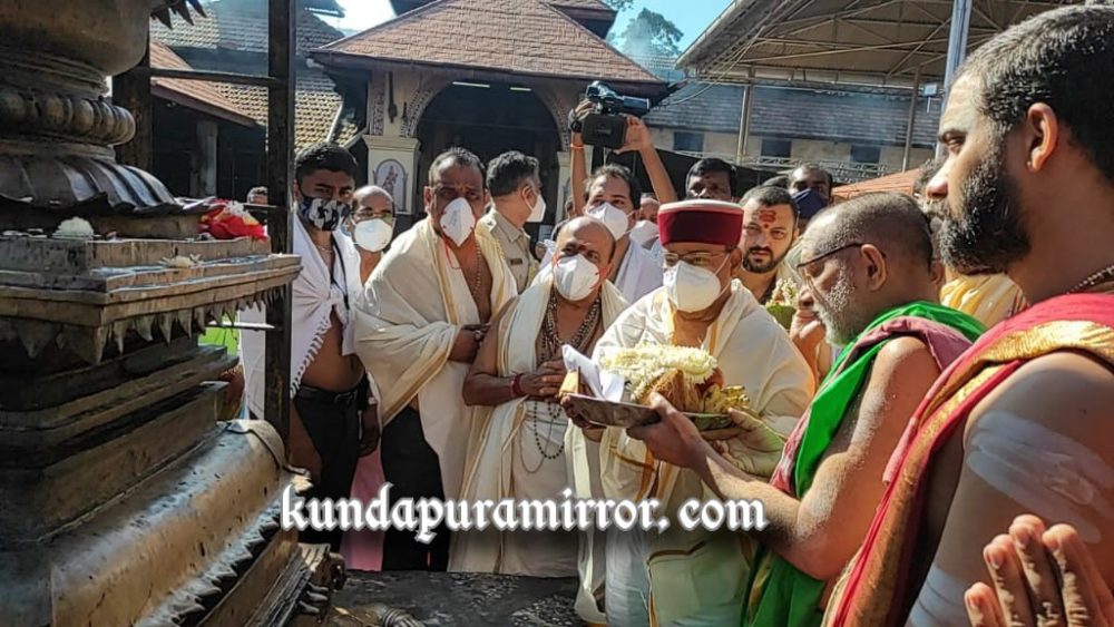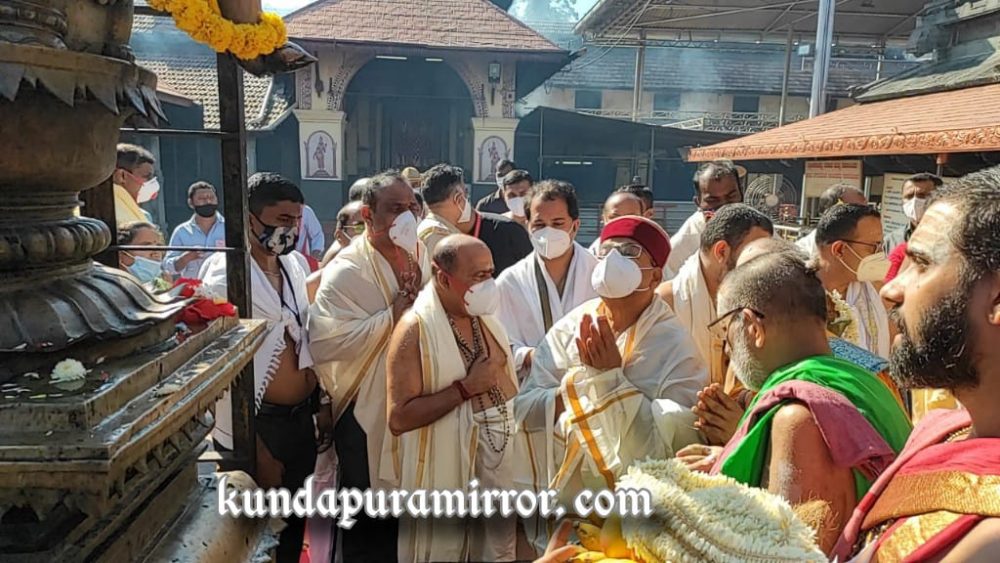 ಕೊಲ್ಲೂರು: ಕರ್ನಾಟಕ ರಾಜ್ಯಪಾಲರಾದ ಥಾವರ್ಚಂದ್ ಗೆಹ್ಲೋಟ್ ಶುಕ್ರವಾರ ಭೇಟಿ ನೀಡಿ ಶ್ರೀ ಮೂಕಾಂಬಿಕಾ ದೇವಿಗೆ ವಿಶೇಷ ಪೂಜೆ ಸಲ್ಲಿಸಿದರು.