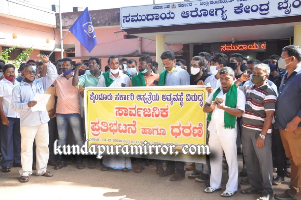 ಬೈಂದೂರು:ಬೈಂದೂರು ಸರಕಾರಿ ಆಸ್ಪತ್ರೆಯ ಅವ್ಯವಸ್ಥೆ ವಿರುದ್ಧ ಸಾರ್ವಜನಿಕರಿಂದ ಪ್ರತಿಭಟನೆ ಹಾಗೂ ಧರಣಿಯು ಡಿ.3 ಶುಕ್ರವಾರ ಸರಕಾರಿ ಆಸ್ಪತ್ರೆ ಎದುರು ನಡೆಯಿತು.