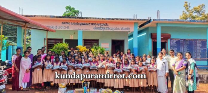 ಸದಾ ಪರಿಶ್ರಮ ಪ್ರಯತ್ನದಿಂದ ಕ್ರೀಡಾ ಸಾಧನೆಯ ಸರಮಾಲೆಯನ್ನೇ ಮುಡಿಗೇರಿಸಿದ ಗರಿಮೆ ಉಡುಪಿ ಜಿಲ್ಲೆಯ ಬೈಂದೂರು ವಲಯದ ಸರಕಾರಿ ಹಿರಿಯ ಪ್ರಾಥಮಿಕ ಶಾಲೆ, ಆಲೂರಿನದ್ದು ಪ್ರತಿವರ್ಷ ಕ್ರೀಡೆಯ ವಿವಿಧ ವಿಭಾಗದಲ್ಲಿ ದೈಹಿಕ ಶಿಕ್ಷಕರಾದ ವೀರೇಂದ್ರ ಜೋಗಿ ಮಾರ್ಗದರ್ಶನದಲ್ಲಿ ಇಲ್ಲಿಯ ಮಕ್ಕಳು ಜಿಲ್ಲಾ, ವಿಭಾಗ, ರಾಷ್ಟ್ರ ಮಟ್ಟಕ್ಕೆ ಆಯ್ಕೆಯಾಗಿರುವ ಕಾರಣ ಶಿಕ್ಷಣ ಫೌಂಡೇಶನ್ ಉಡುಪಿ ಜಿಲ್ಲೆಯ ಏಕೈಕ ಶಾಲೆಯಾಗಿ ಸರ್ಕಾರಿ ಹಿರಿಯ ಪ್ರಾಥಮಿಕ ಶಾಲೆ ಆಲೂರನ್ನು ಆಯ್ಕೆ ಮಾಡಿ ಸುಮಾರು ಒಂದು ಲಕ್ಷಕ್ಕೂ ಅಧಿಕ ಮೌಲ್ಯದ ಕ್ರೀಡಾ ಸಮವಸ್ತ್ರ ಟ್ರ್ಯಾಕ್ ಪ್ಯಾಂಟ್ ಟ್ರ್ಯಾಕ್ ಸೂಟ್, ಶೂ ಗಳನ್ನು ಸುಮಾರು 105 ವಿದ್ಯಾರ್ಥಿನಿಯರಿಗೆ ಅಲ್ಲದೆ ಶಾಲೆಗೆ ಅಗತ್ಯವಿರುವ ಕ್ರೀಡಾ ಪರಿಕರಗಳನ್ನು ವಿತರಿಸುವ ಕಾರ್ಯಕ್ರಮವು ಡಿ.17 ಮಂಗಳವಾರದಂದು ಗ್ರಾಮ ಪಂಚಾಯತ್ ಅಧ್ಯಕ್ಷರಾದ ರಾಜೇಶ್ ದೇವಾಡಿಗ ಇವರ ಅಧ್ಯಕ್ಷತೆಯಲ್ಲಿ ಜರುಗಿತು.