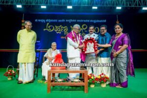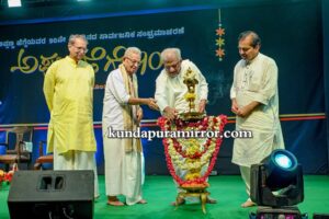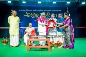 ಮಂಗಳವಾರ ರಾತ್ರಿ ಸಮೀಪದ ವಕ್ವಾಡಿಯ ಗುರುಕುಲ ಪಬ್ಲಿಕ್ ಸ್ಕೂಲ್ ಆವರಣದಲ್ಲಿ ಬಿ.ಅಪ್ಪಣ್ಣ ಹೆಗ್ಡೆ ಜನ್ಮದಿನೋತ್ಸವ ಸಮಿತಿ ಹಾಗೂ ಬಸ್ರೂರು ಅಪ್ಪಣ್ಣ ಹೆಗ್ಡೆ ಪ್ರತಿಷ್ಠಾನ (ರಿ) ವತಿಯಿಂದ ನಡೆದ ಬಸ್ರೂರು ಅಪ್ಪಣ್ಣ ಹೆಗ್ಡೆಯವರ 90 ನೇ ಹುಟ್ಟುಹಬ್ಬ ಆಚರಣೆ, ದತ್ತಿನಿಧಿ ವಿತರಣೆ ಮತ್ತು ಪ್ರಶಸ್ತಿ ಪ್ರದಾನ ಸಮಾರಂಭವನ್ನು ದೀಪ ಬೆಳಗಿಸಿ ಉದ್ಘಾಟಿಸಿ ಆಶೀರ್ವದಿಸಿದರು.